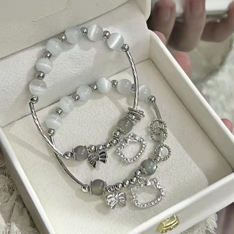 🍑coco🍑 Sanrio Hello Kitty Y2K Vòng Tay Thắt Nơ Anime Kawaii Giai Điệu Của Tôi Bạc Ánh Trăng Đá Nữ Cô Gái Trang Sức