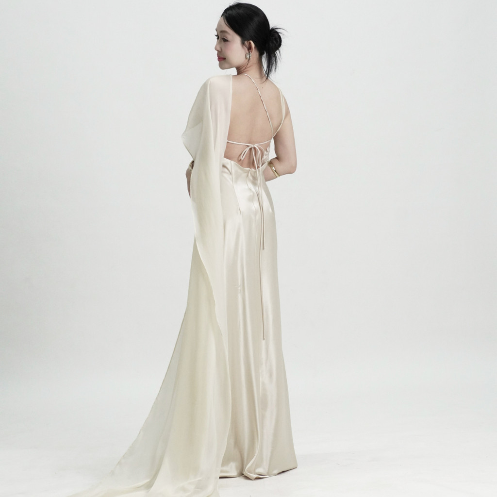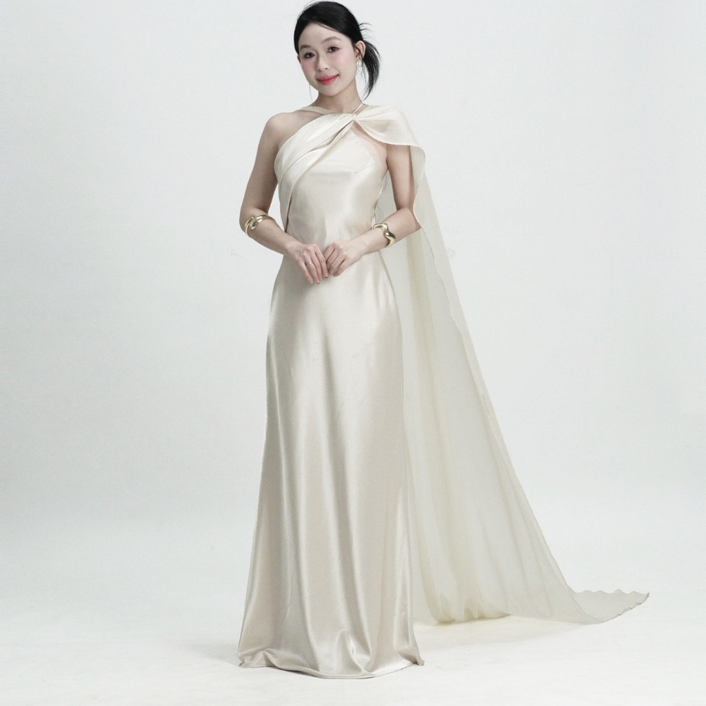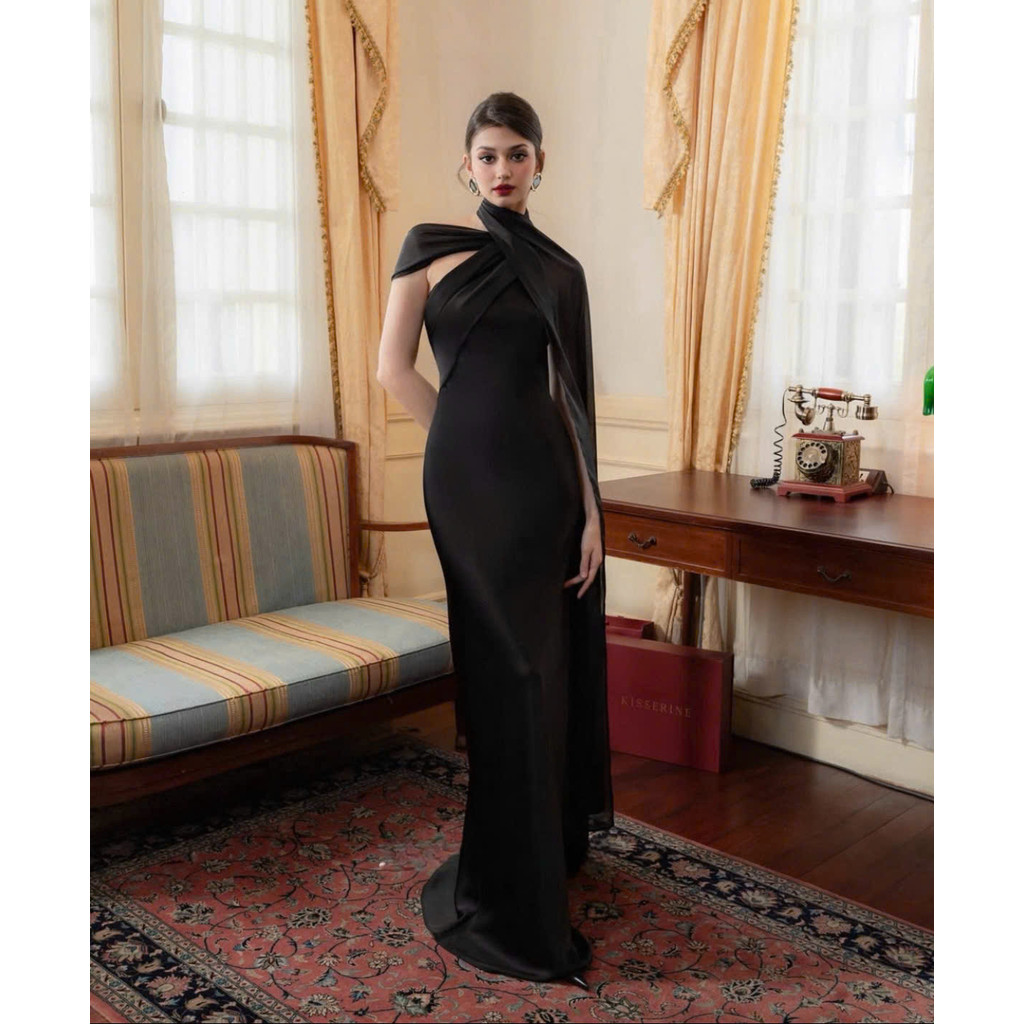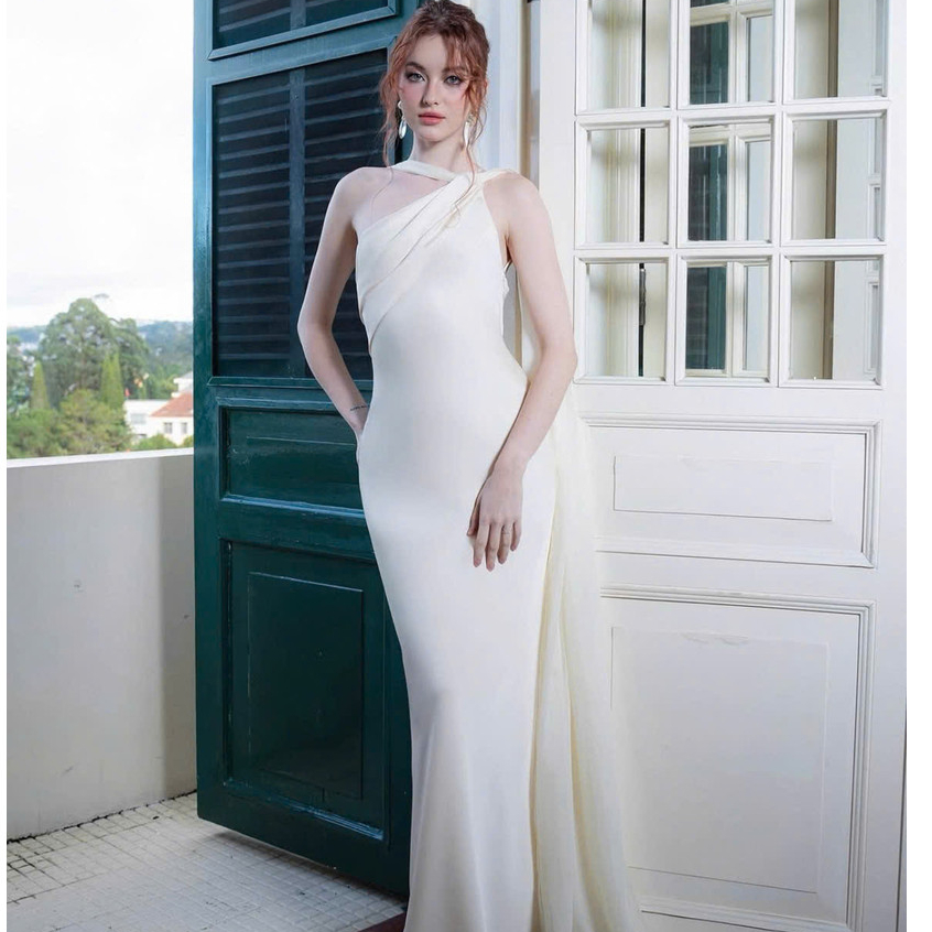 Váy Lụa Cổ Yếm Tà Chéo Hở Lưng NV09 Váy Lụa Dáng Dài Tôn Dáng Gợi Cảm, Sang Chảnh Đi Tiệc