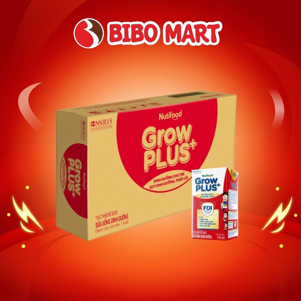 Thùng 48 Hộp Sữa Pha Sẵn GrowPLUS+ Đỏ Có Đường Hỗ Trợ Tiêu Hóa Tăng Cân Dành Cho Bé 110ml 180ml - Bibomart