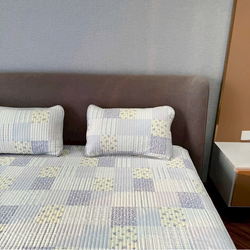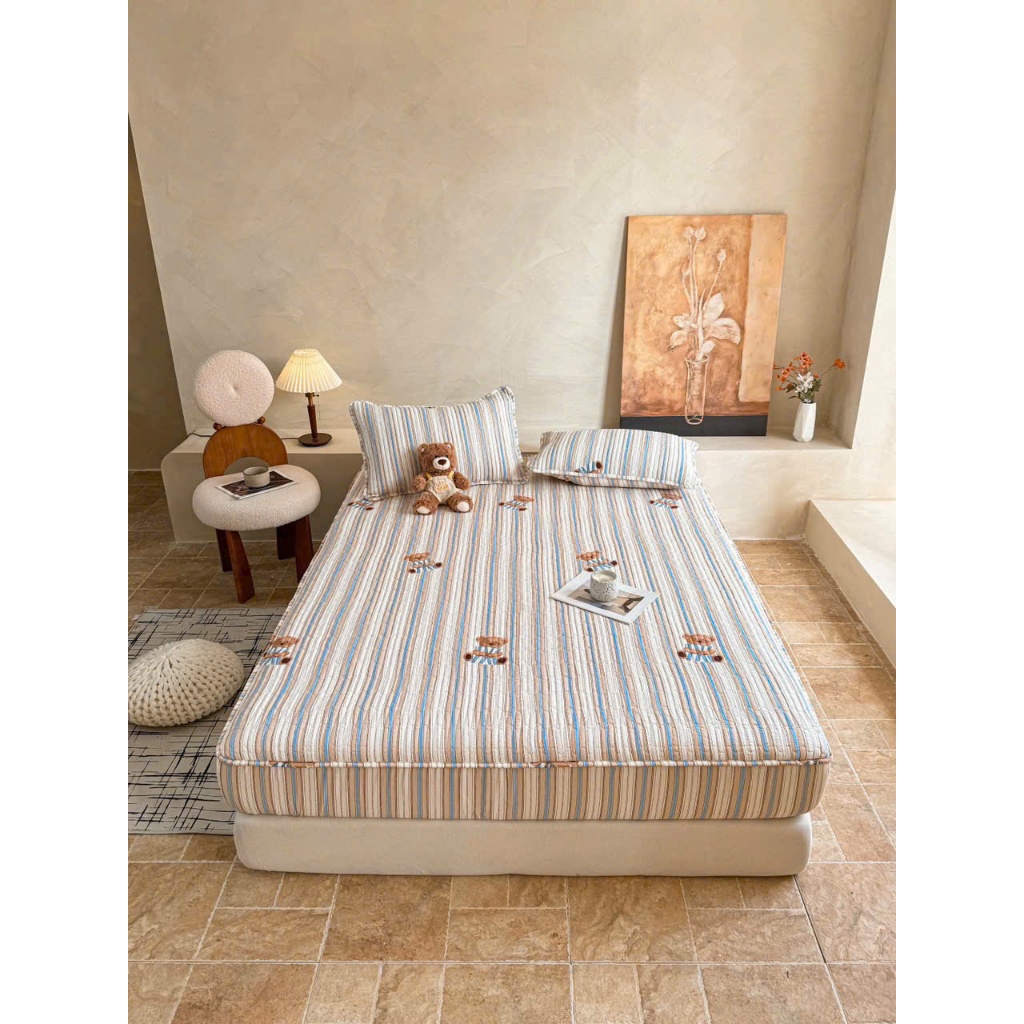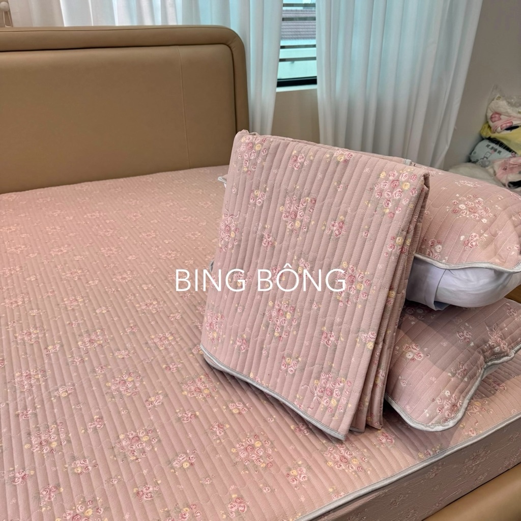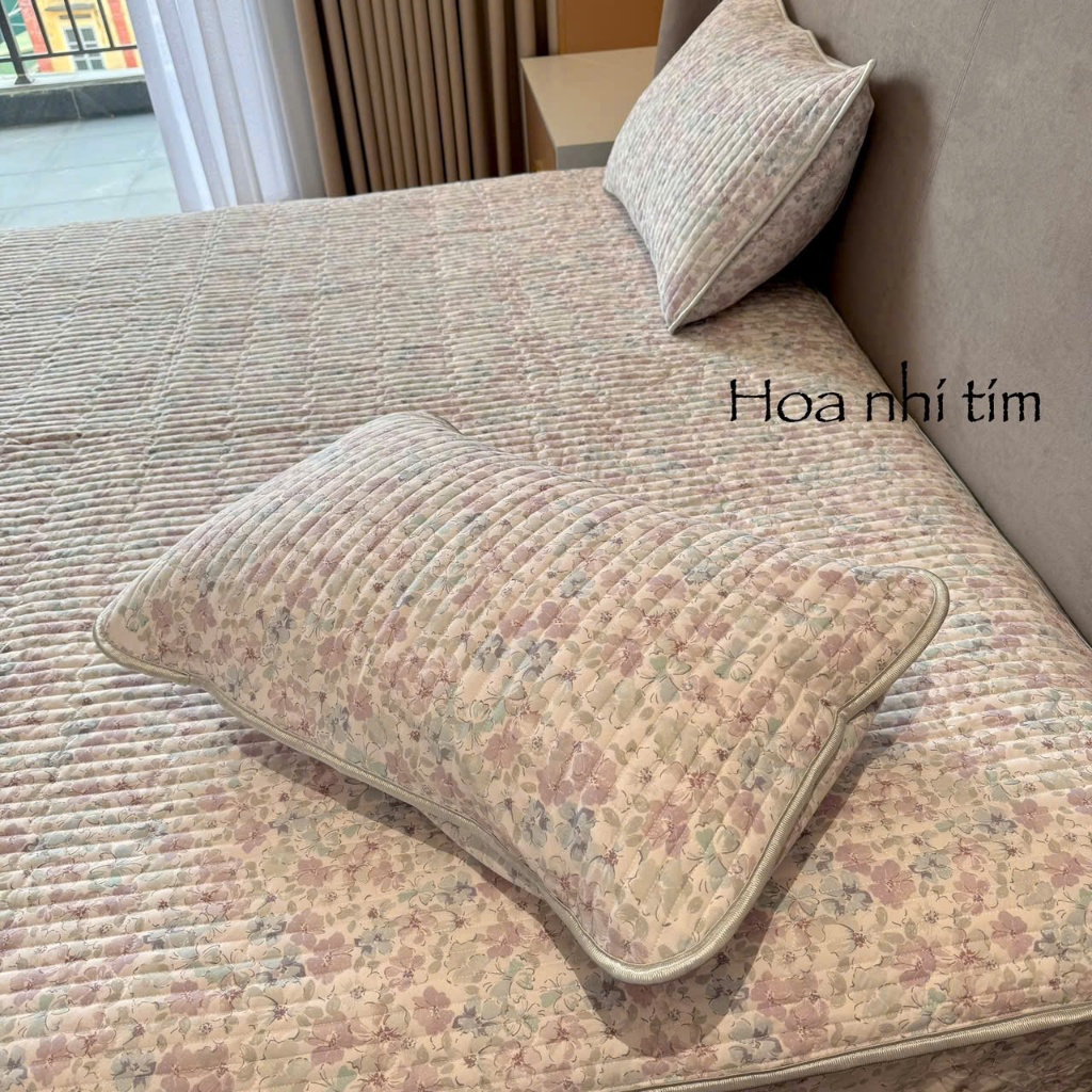 Bộ ga giường 3 món chần bông, Thun Đũi Cao Cấp, mịn mát, hàng nhập khẩu Hàn Quốc - CAM CHĂN GA GỐI