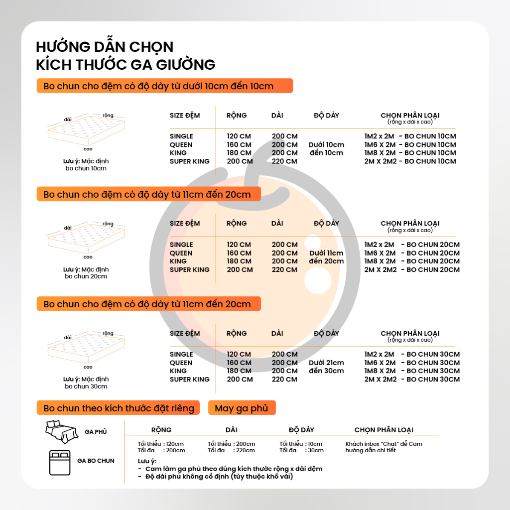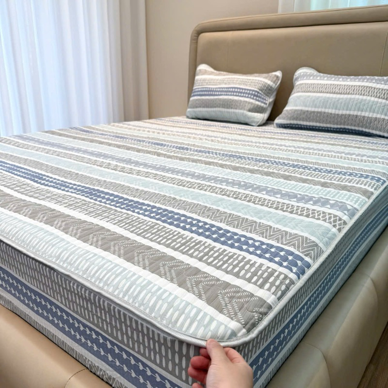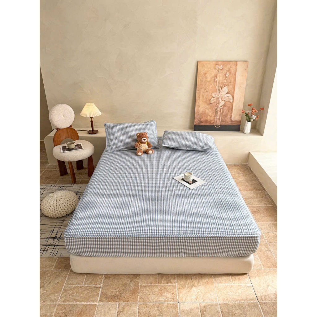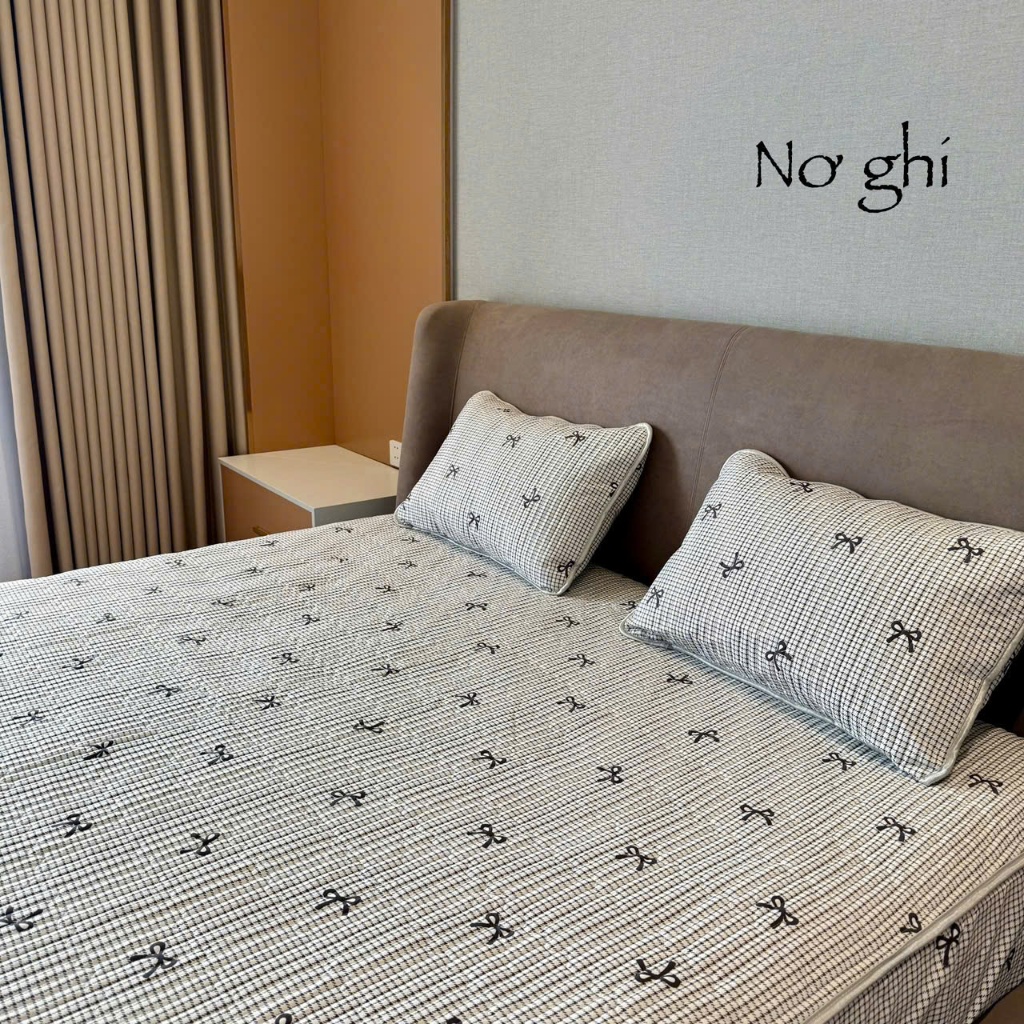 Bộ ga giường 3 món chần bông, Thun Đũi Cao Cấp, mịn mát, hàng nhập khẩu Hàn Quốc - CAM CHĂN GA GỐI