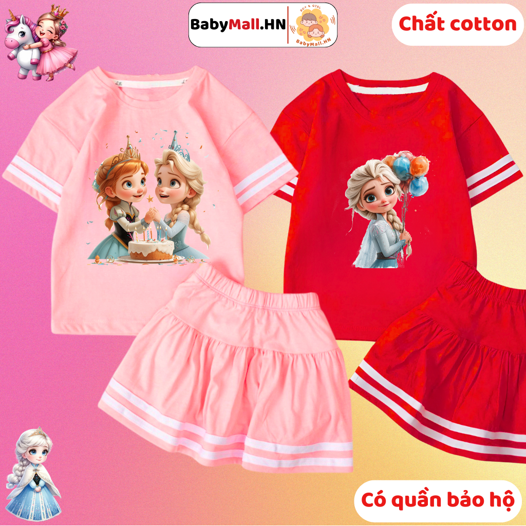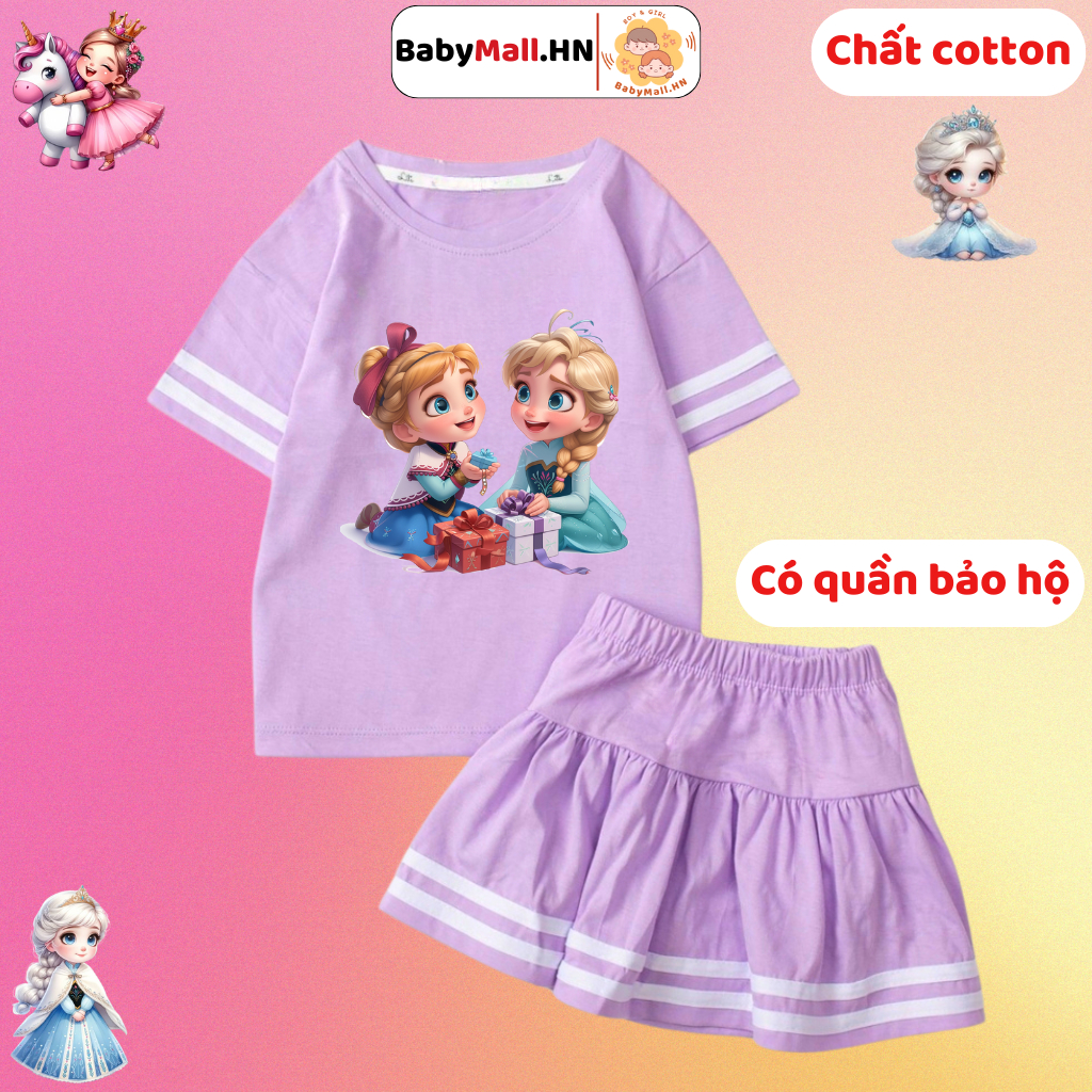 Bộ áo váy hình Công Chúa Tuyết Elsa cho bé gái BABYMALL đồ bộ cotton áo váy cho bé có quần bảo hộ