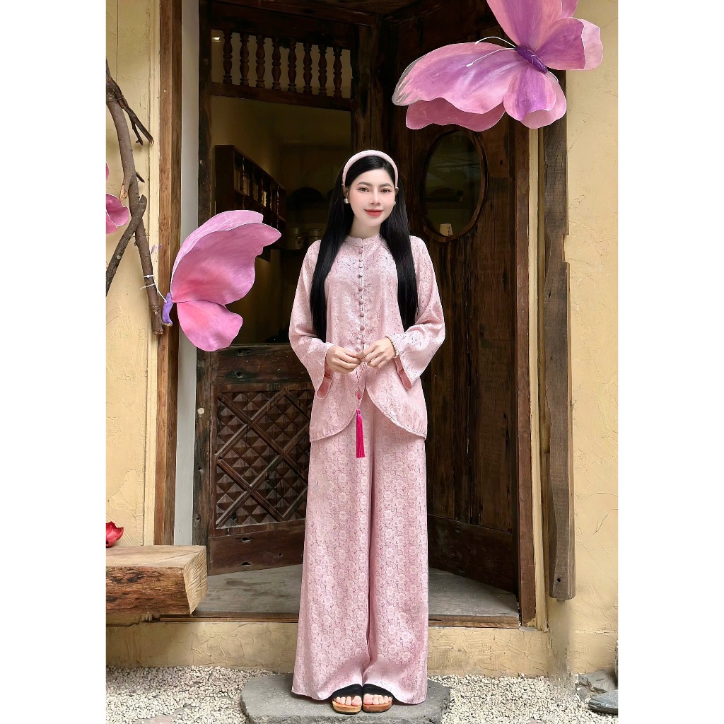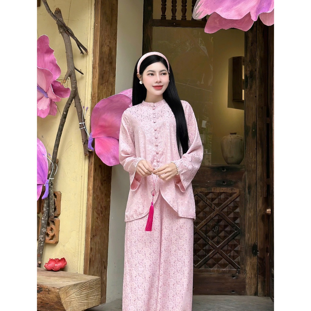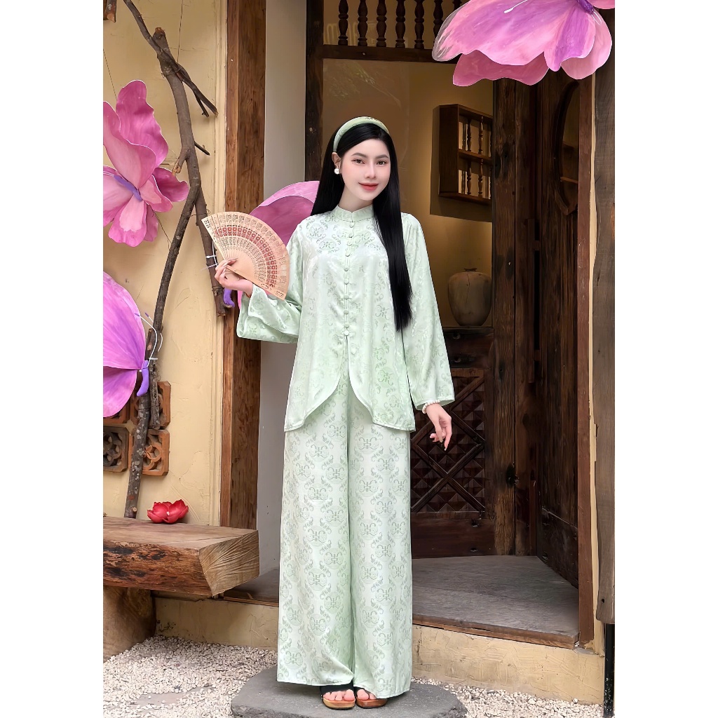 Đồ lam cho nữ lụa gấm vạt hò TINH NHI sang trọng và thoải mái PP286