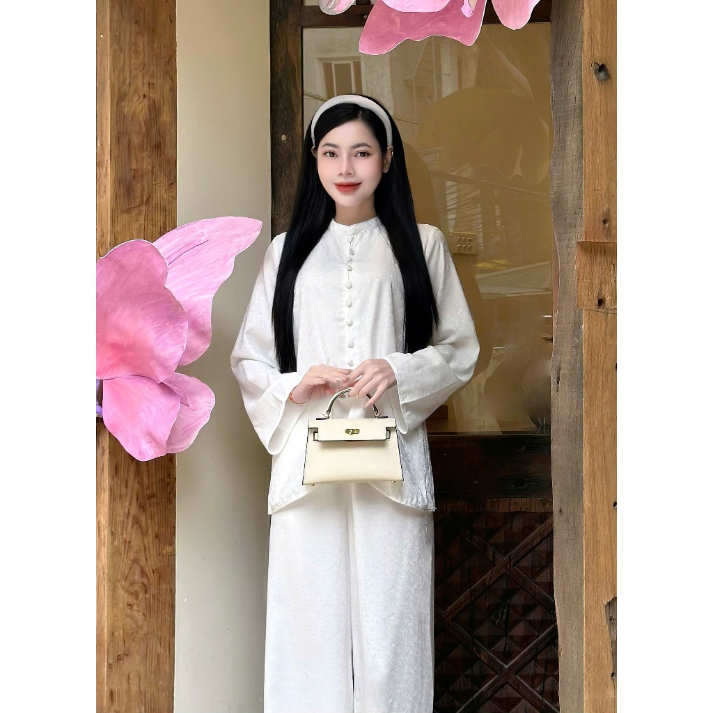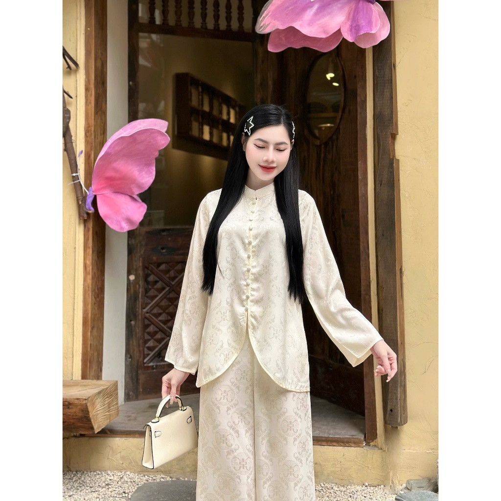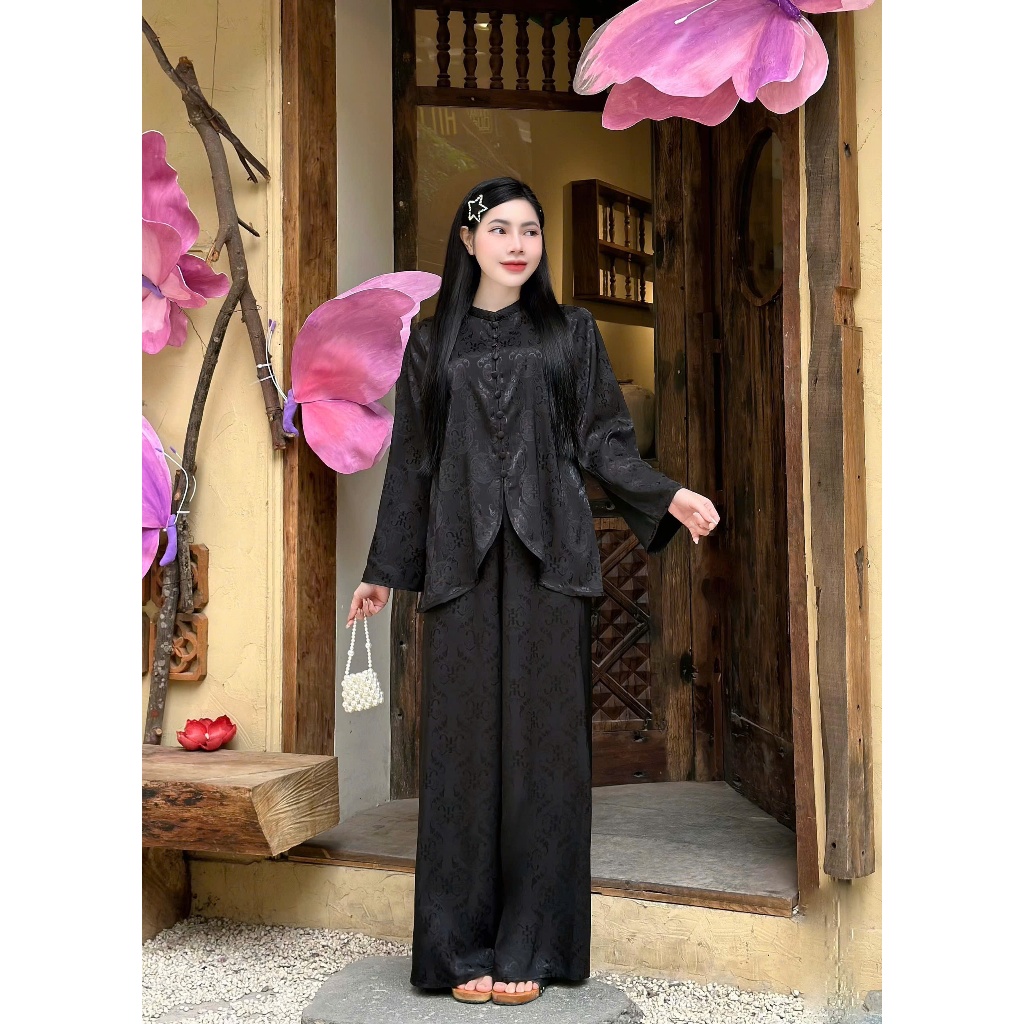 Đồ lam cho nữ lụa gấm vạt hò TINH NHI sang trọng và thoải mái PP286