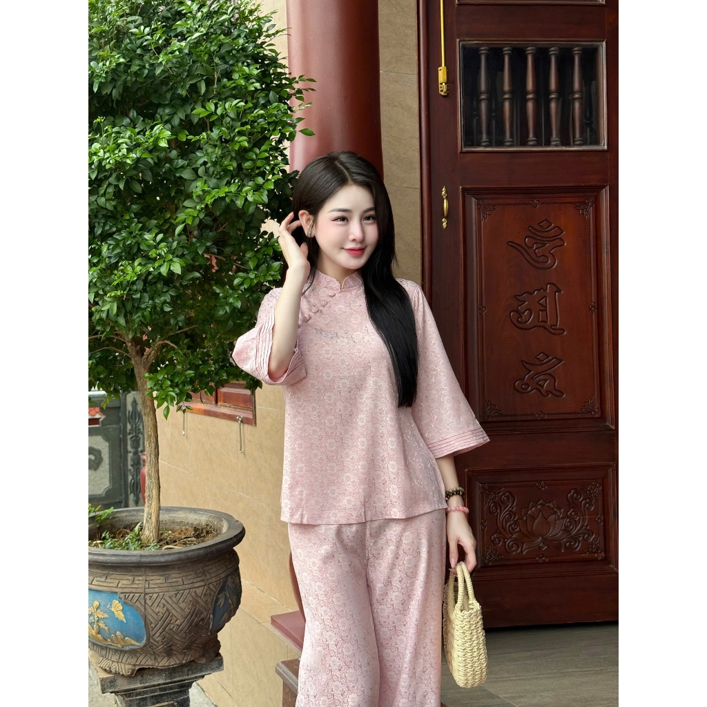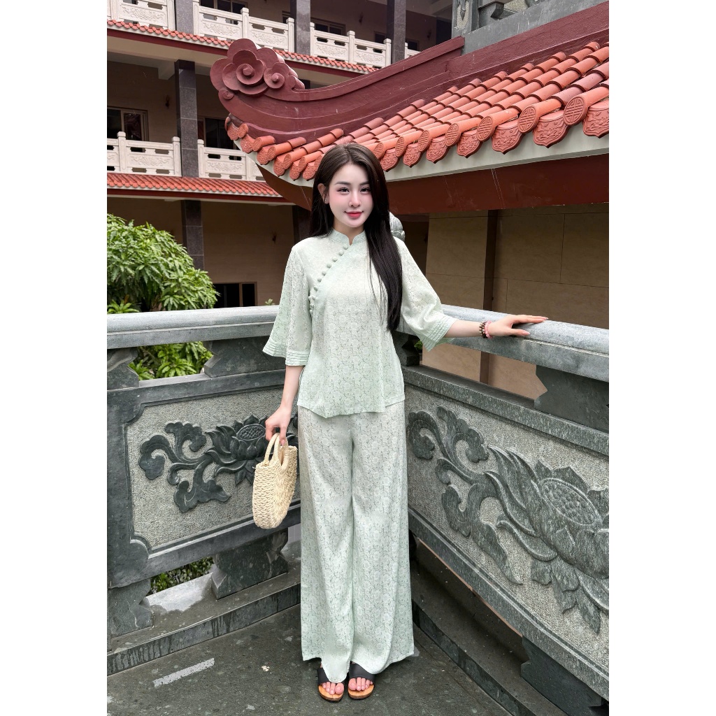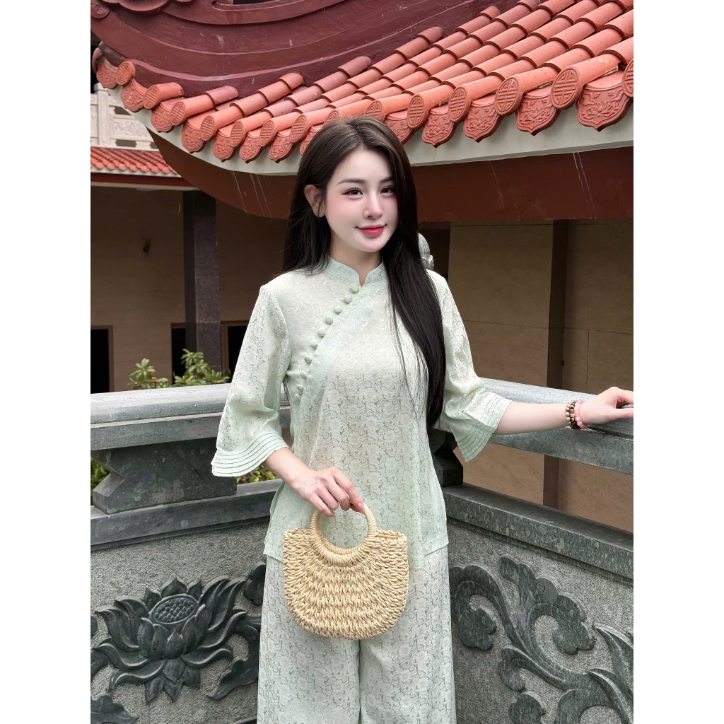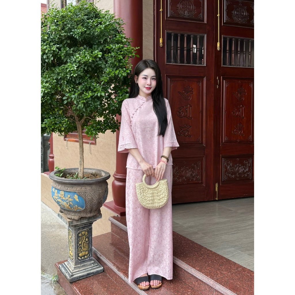Đồ lam đi lễ phối tay hoa cúc TINH NHI sang trọng và thanh lịch PP342