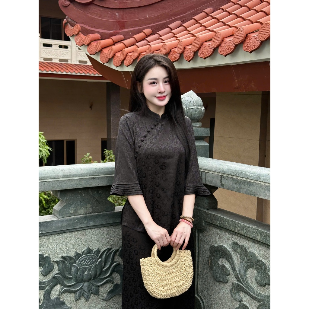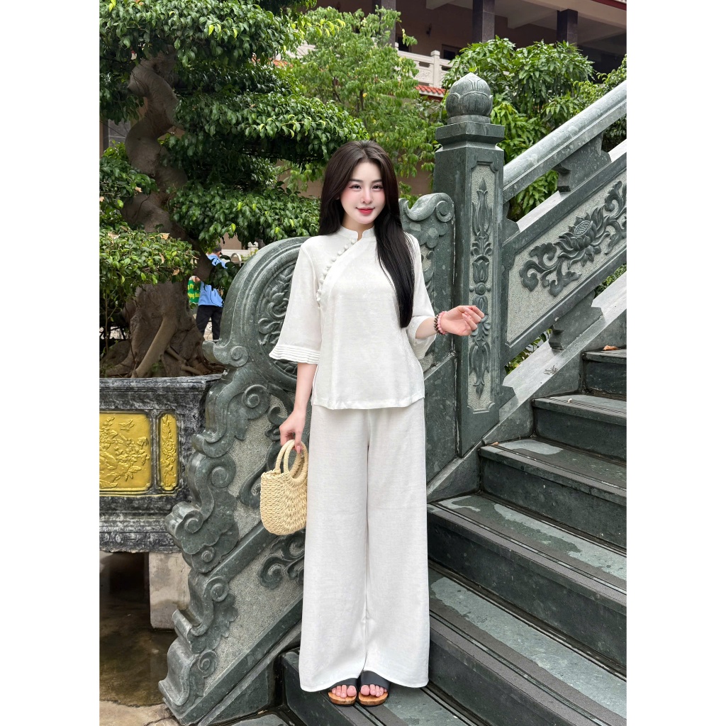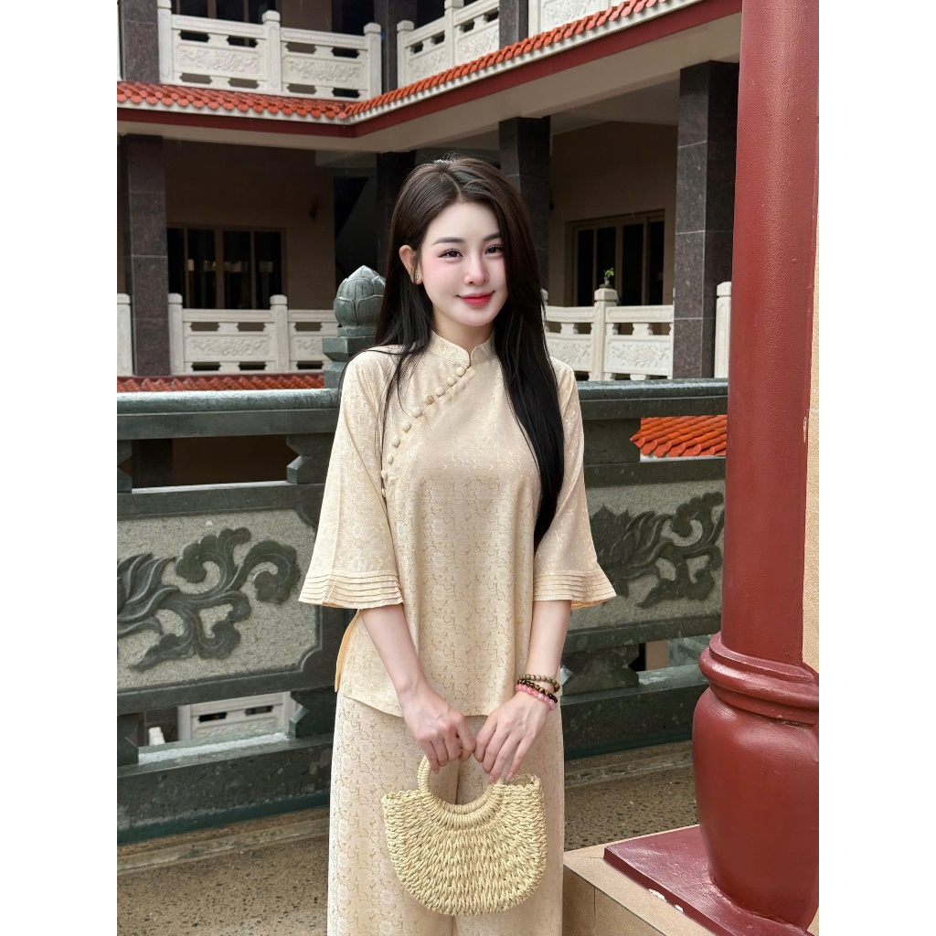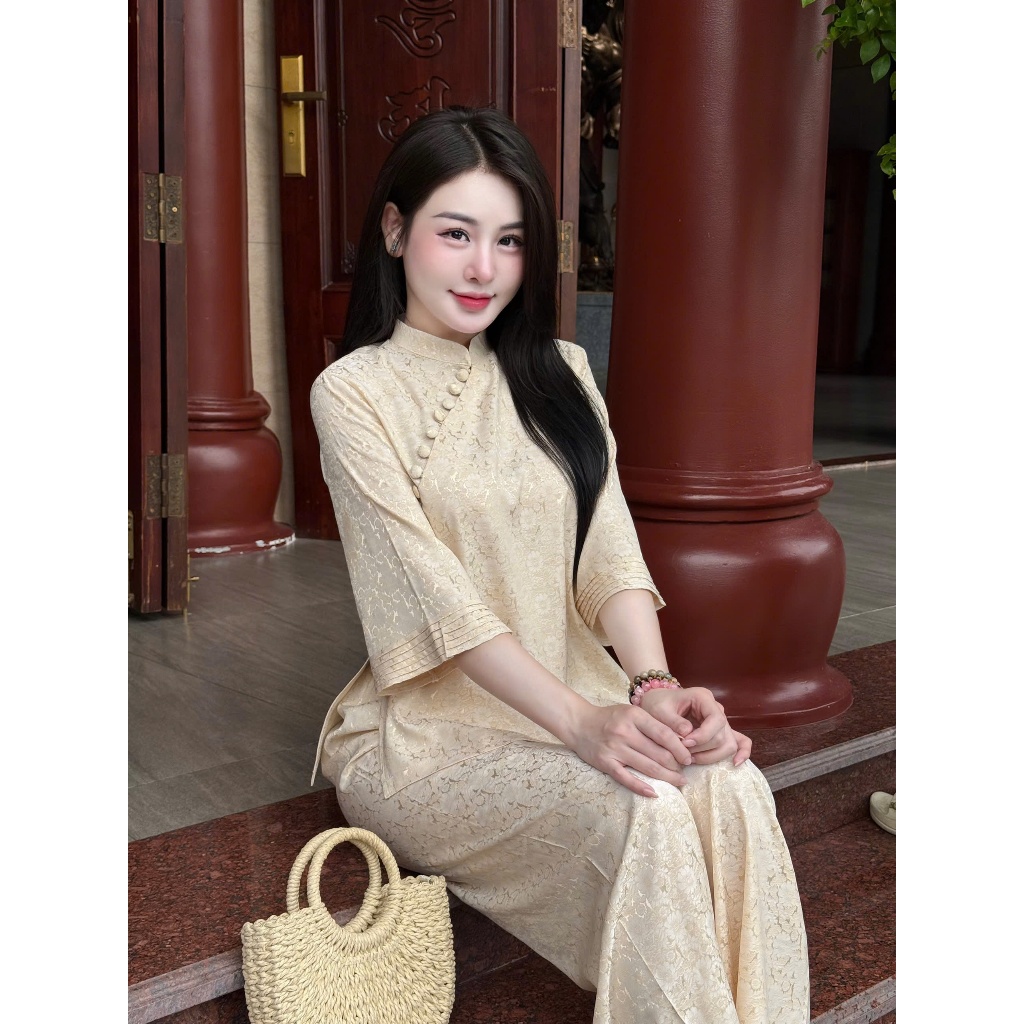 Đồ lam đi lễ phối tay hoa cúc TINH NHI sang trọng và thanh lịch PP342