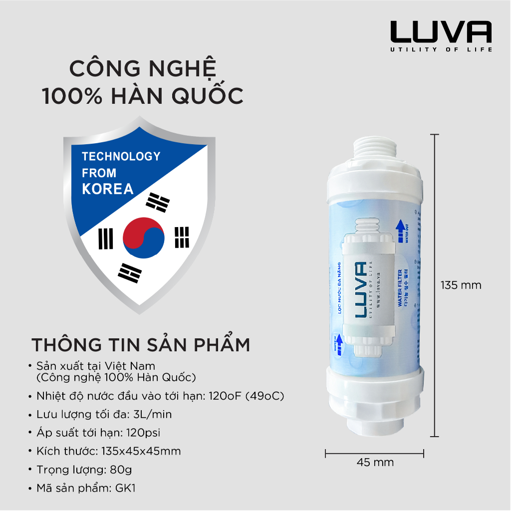 Lọc nước đa năng Luva GK1 lọc vòi hoa sen,vòi rửa bát, máy rửa bát, máy giặt, bồn cầu thông minh