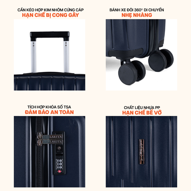 Vali Kéo MIAvn Larita ALY - Size 20/24/28 Inch, Nhựa PP Bền Bỉ, Hạn Chế Bể Vỡ, Khoá TSA Bảo Mật, Bảo Hành Trọn Đời