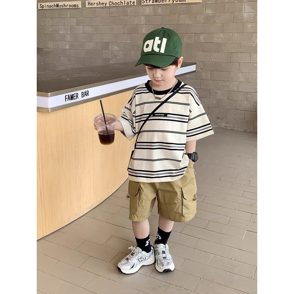 [10-30kg]Bộ quần áo cộc tay chất cotton,quần kaki có túi phong cách Hàn quốc cho bé trai,Kho sỉ mẹ Gạo.KẺ NGANG-QUẦN NÂU