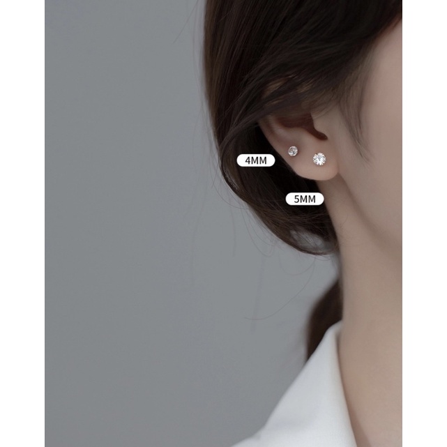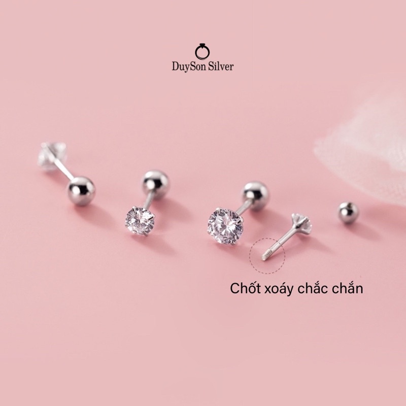 Khuyên tai nam nữ nụ đá bạc 925 chốt vặn cá tính, Bông tai bạc Ý 925 mạ vàng Duyson Silver KCBX1