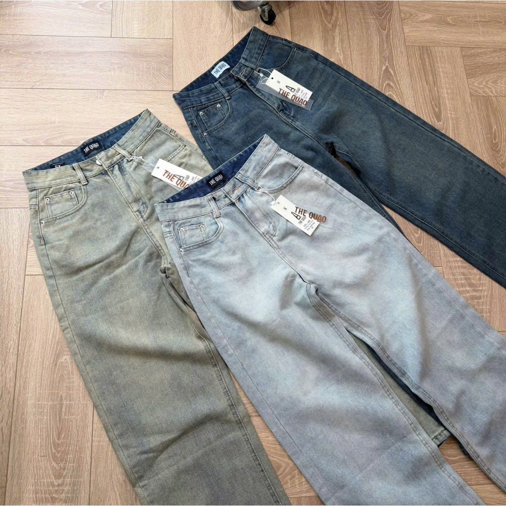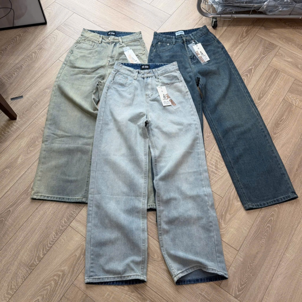 THE QUẠO - Quần Jean Bò Ống Suông Nữ Lưng Cao Màu Xanh Đậm /Xanh Bạc S1506_685