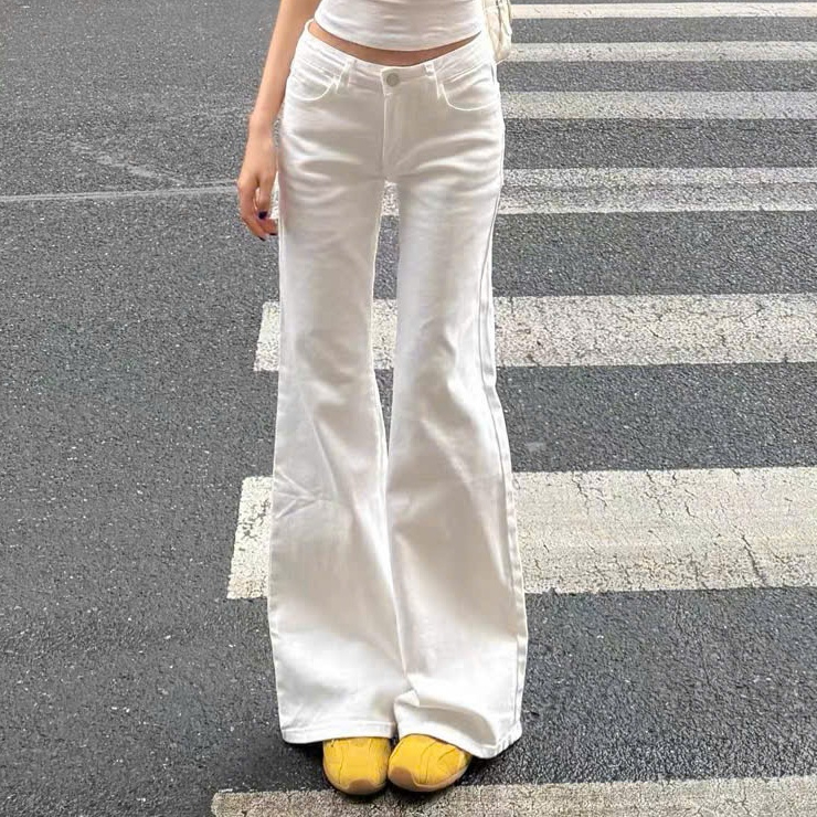 THE QUẠO - Quần Jean Nữ Lưng Cực Thấp Ống Suông Loe R2511_730