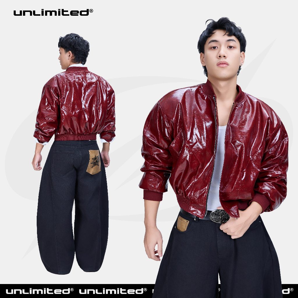Áo Khoác Bomber Da Bóng Form Boxy UNLIMITED CLUB Leather Bomber Jaket Boxy Unisex Nam Nữ