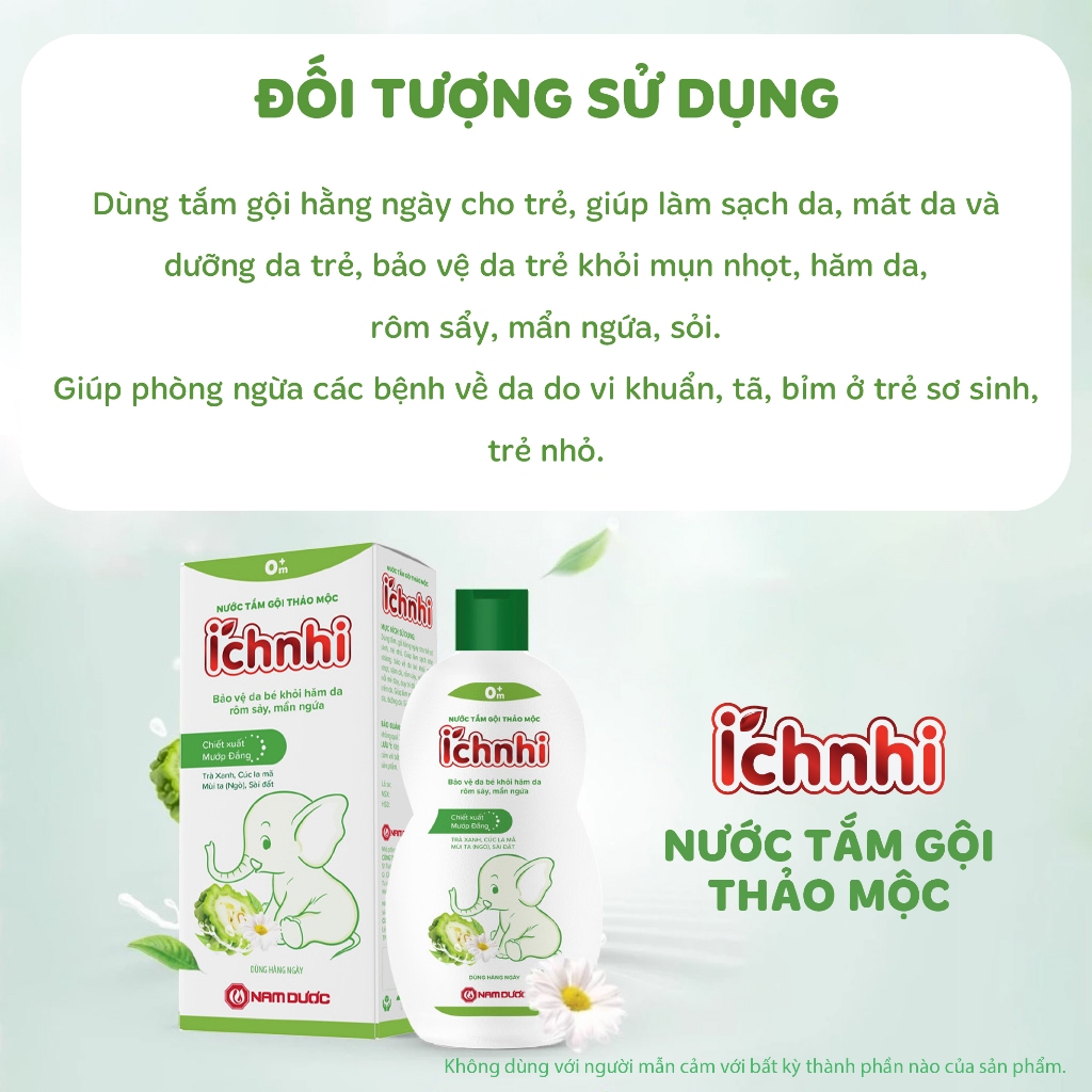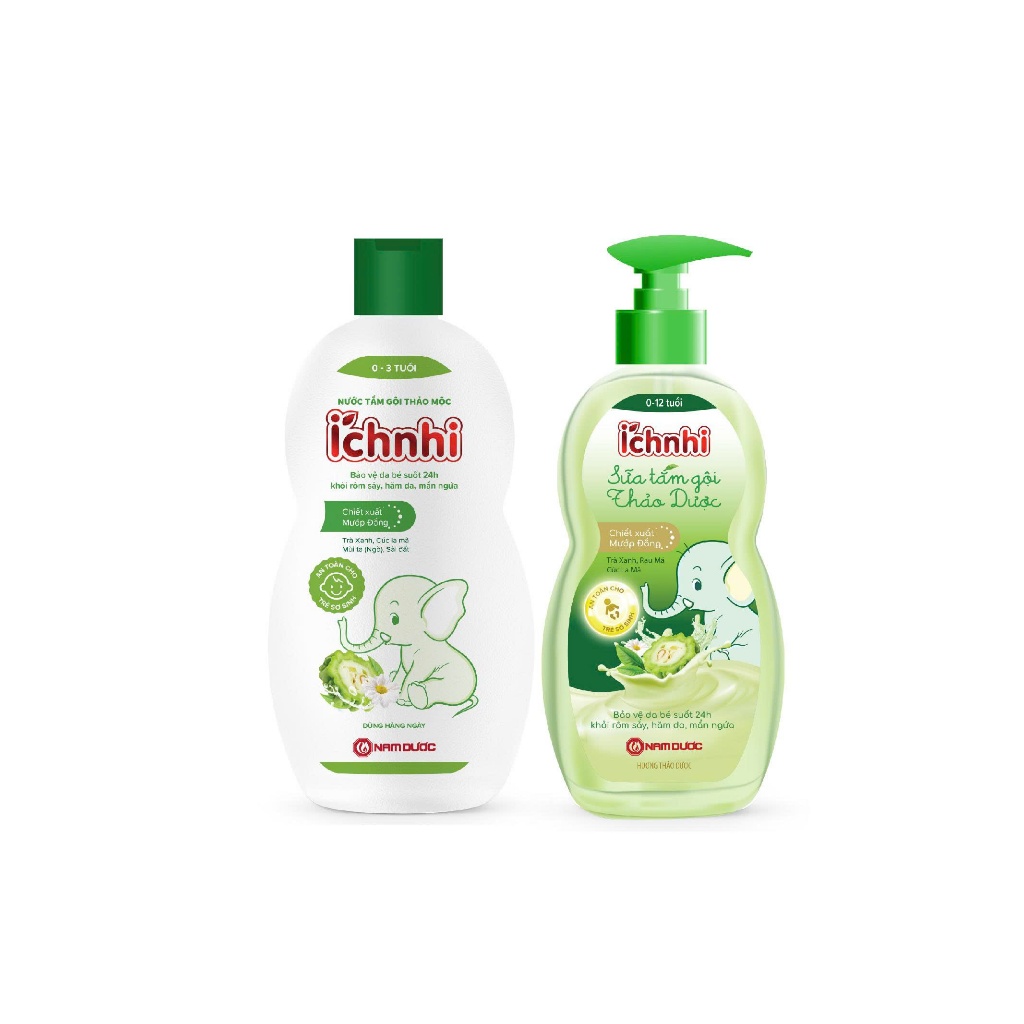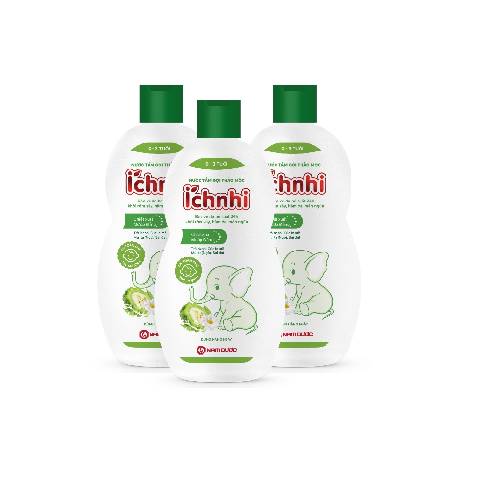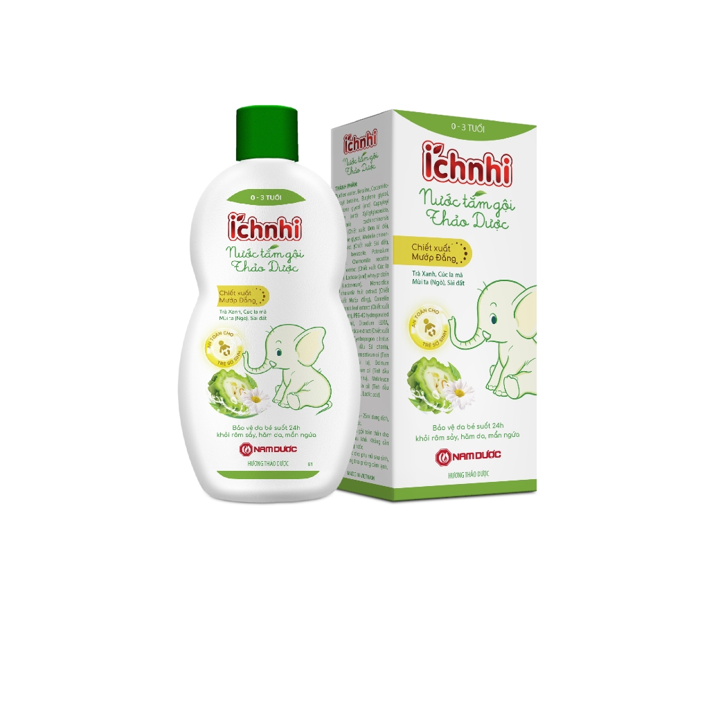Nước tắm gội thảo mộc Ích Nhi chai 230ml giúp làm sạch da, mát da và dưỡng da trẻ, bảo vệ da trẻ khỏi mụn nhọt, hăm da,