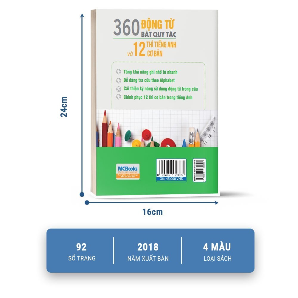 Sách - 360 Động Từ Bất Quy Tắc Và 12 Thì Cơ Bản Trong Tiếng Anh Bản Khổ To Cho Người Học Cơ Bản