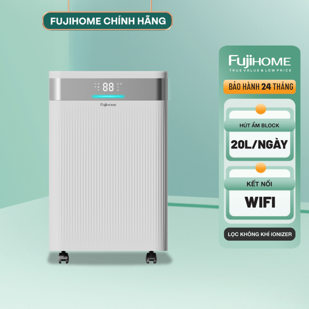 Máy hút ẩm công nghệ máy nén 20L/ngày nhập khẩu FUJIHOME DH20W Kết nối wifi - Bảo hành toàn quốc