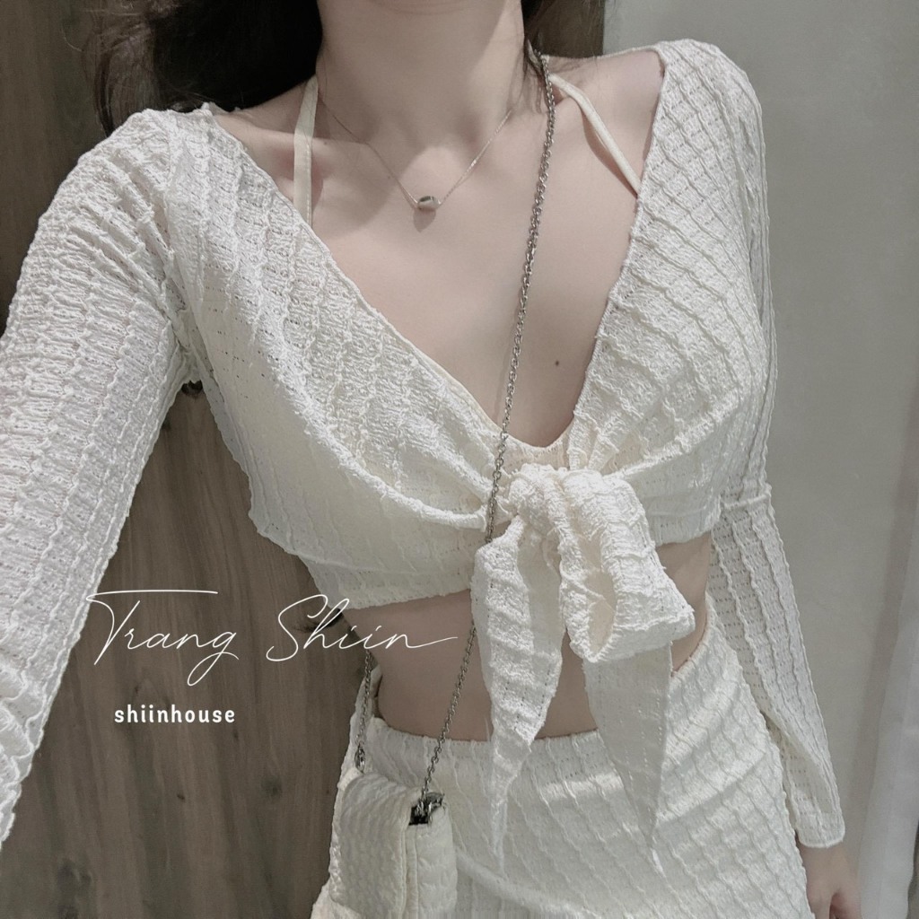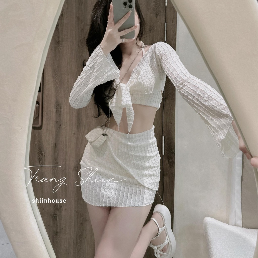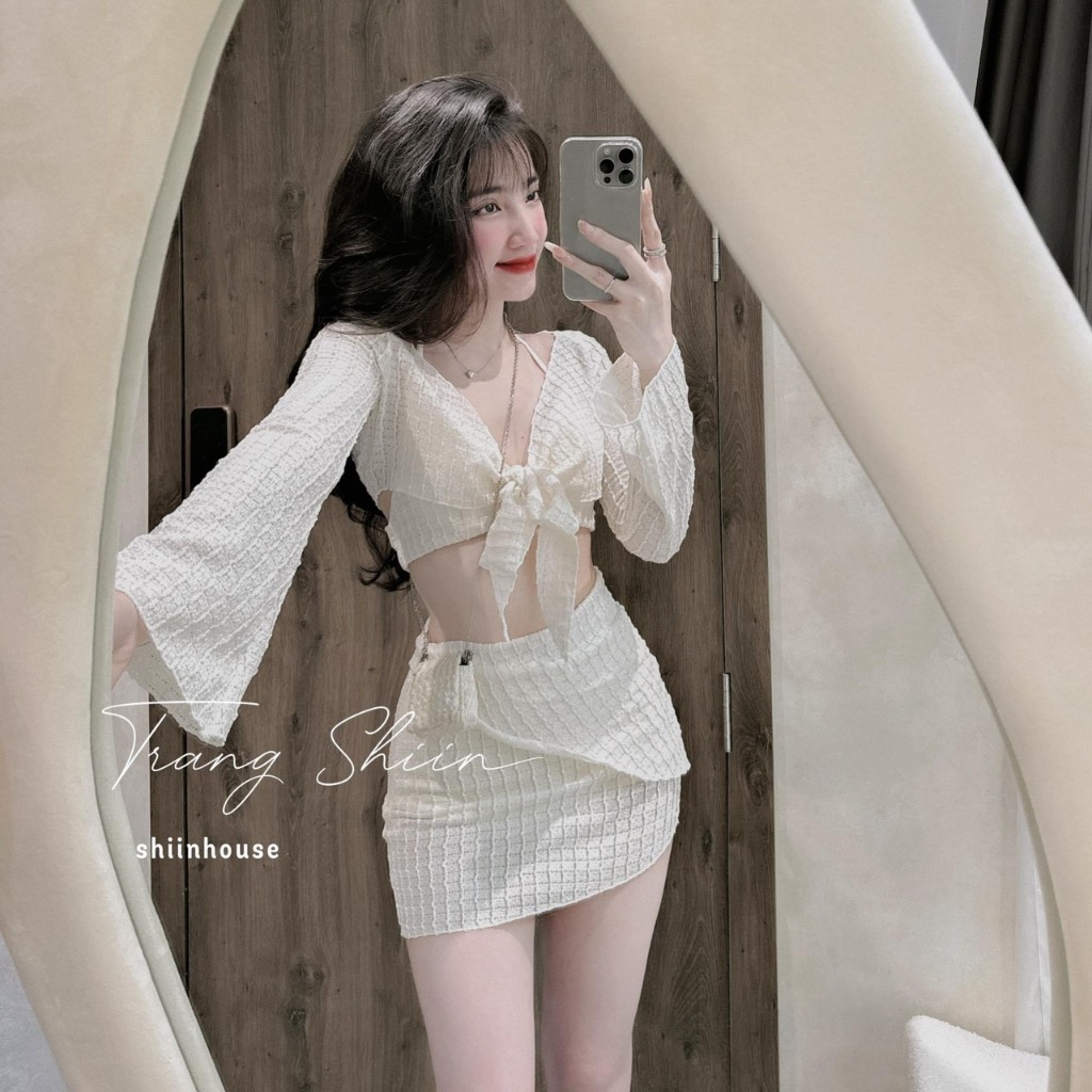 Set đồ bơi Bikini 3 món đi biển 1 màu trắng áo bra đệm dày khoác chân váy chất xốp nhật thiết kế sexy trẻ trung