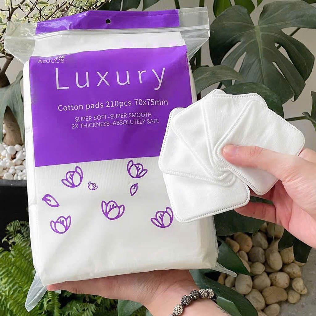Bông tẩy trang Alucos Luxury Size to 210 miếng, Bông tẩy trang cao cấp siêu dai mềm mịn co giãn