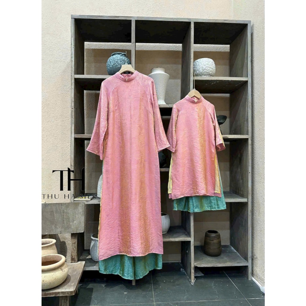 Bộ áo dài mẹ và bé gái, áo dài cho mẹ và bé Tết 2026 - vải tằm ánh kim 4 tà - màu hồng - Áo dài Ngọc Diệp - ND25.887
