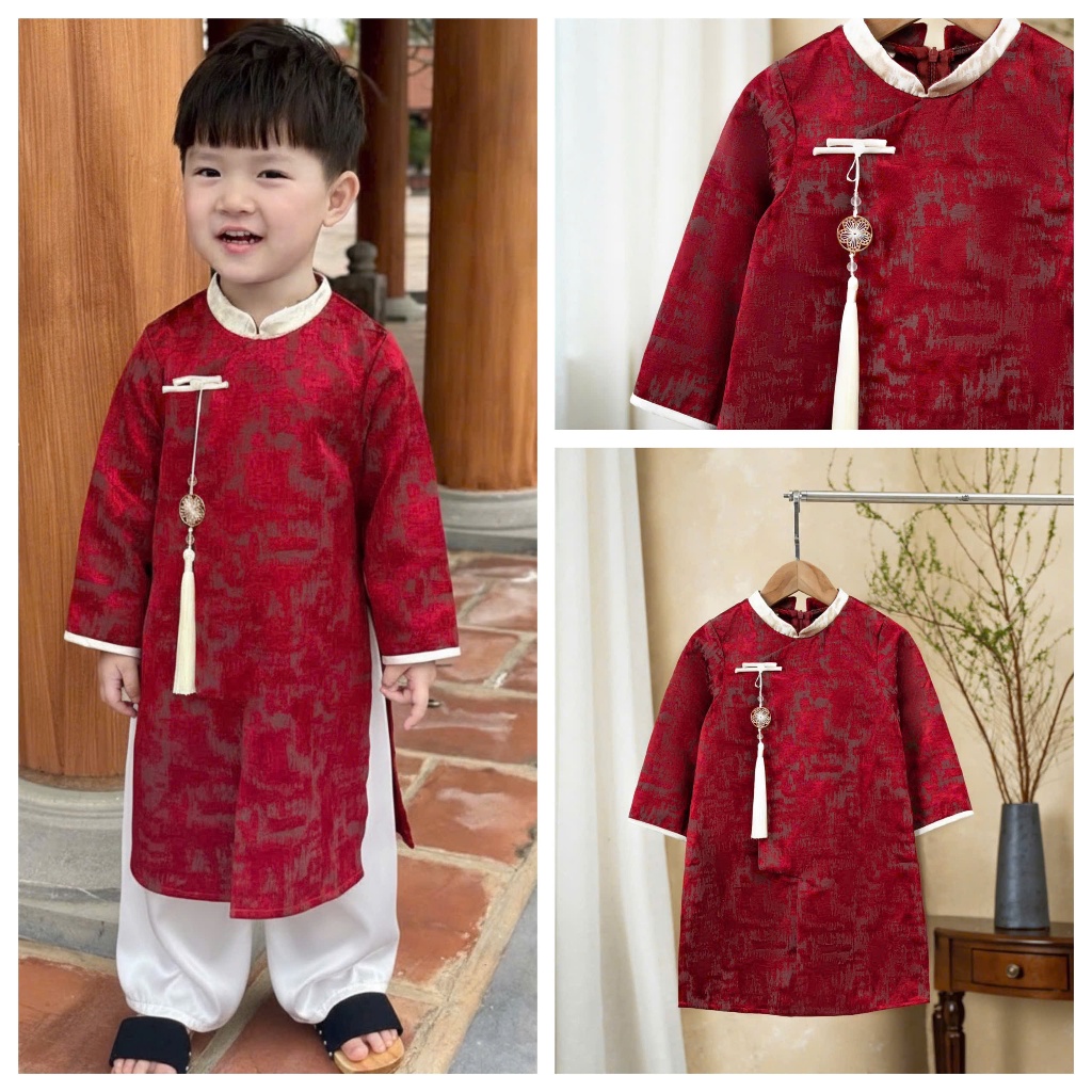 Áo dài cách tân bé trai BÌNH AN, áo dài Tết cho bé trai 2026, vải tafta gấm mềm - 2 màu - Áo dài Ngọc Diệp - ND25.998