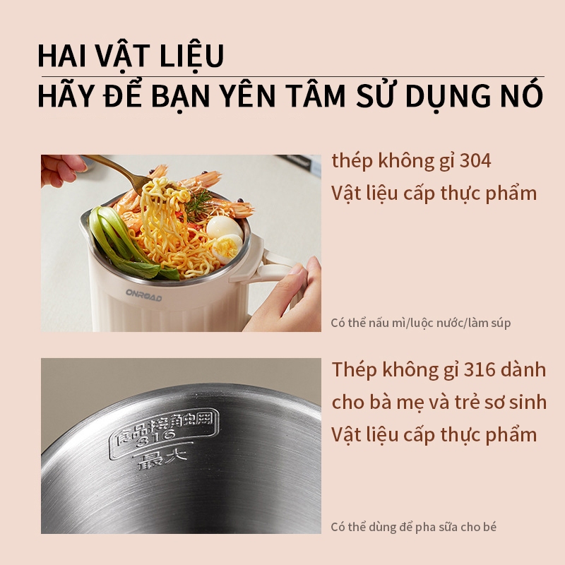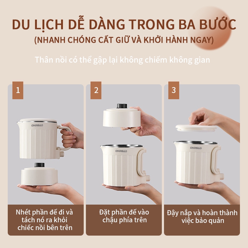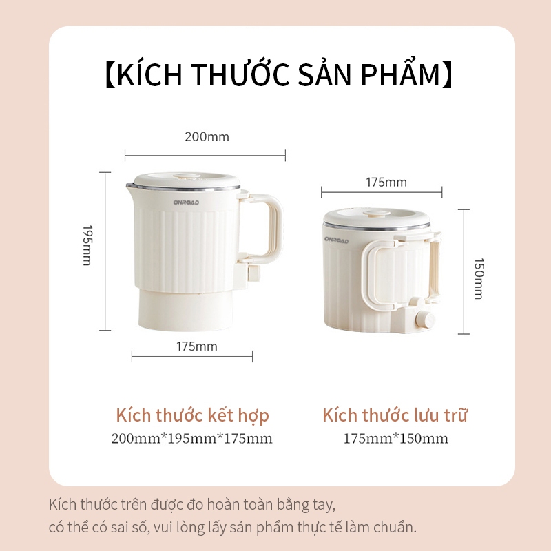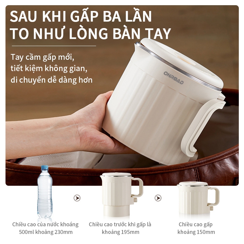 ONR-Ấm Đun Nước Điện 800ML, Chống Bỏng Hai Lớp, Tự Động Ngắt, Ấm Đun Nước Gấp Gọn 600W, Nồi Nấu Mì