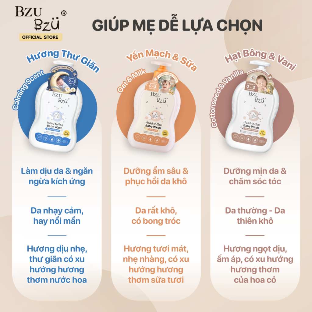 [KOL] Sữa Tắm Gội Toàn Thân Em Bé BZU BZU Baby Head to Toe Wash Oat & Milk Làm Sạch Dịu Nhẹ 600ml