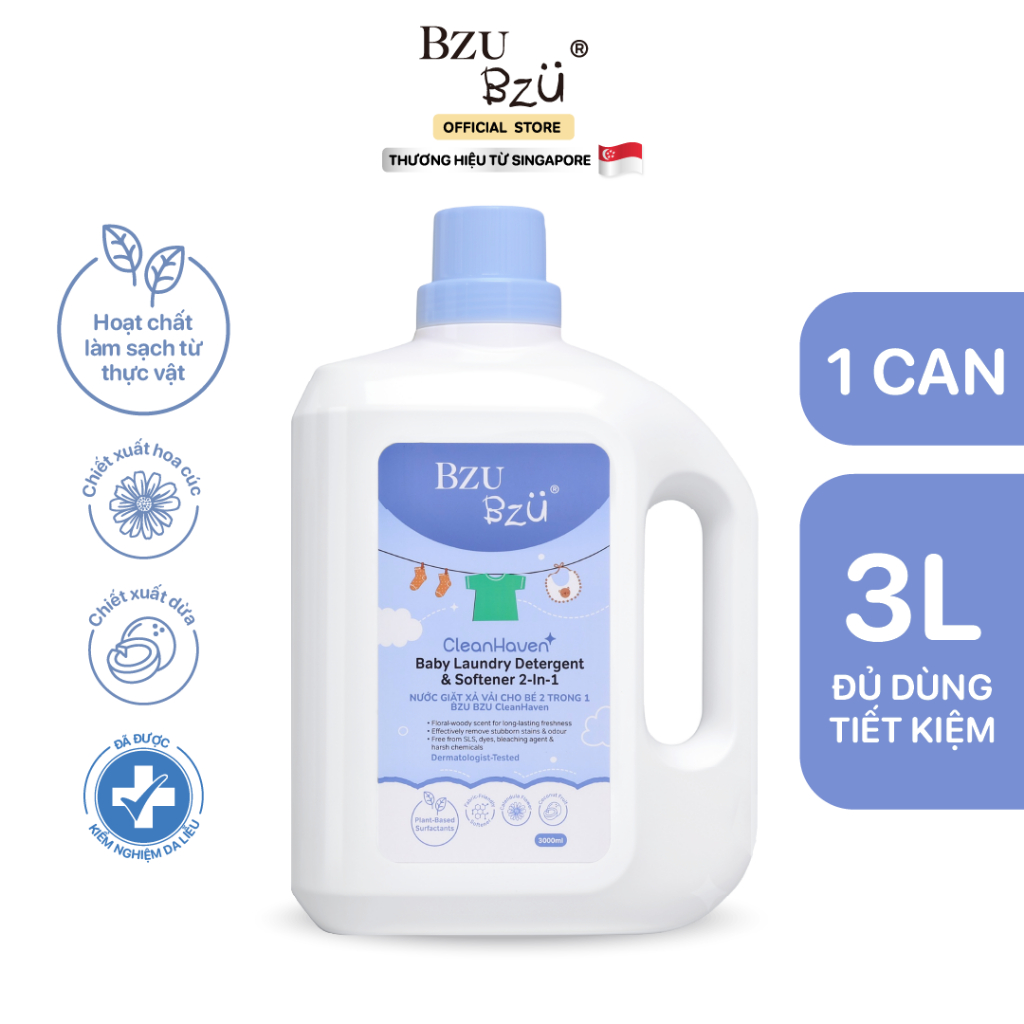 [3 Lít] Combo Nước Giặt Xả Vải BZU BZU Cho Bé Sơ Sinh Thơm Lâu - An Toàn Cho Bé CleanHaven 3 Mùi Hương + Khăn Ướt 30 tờ