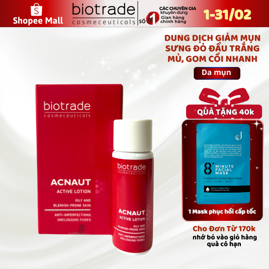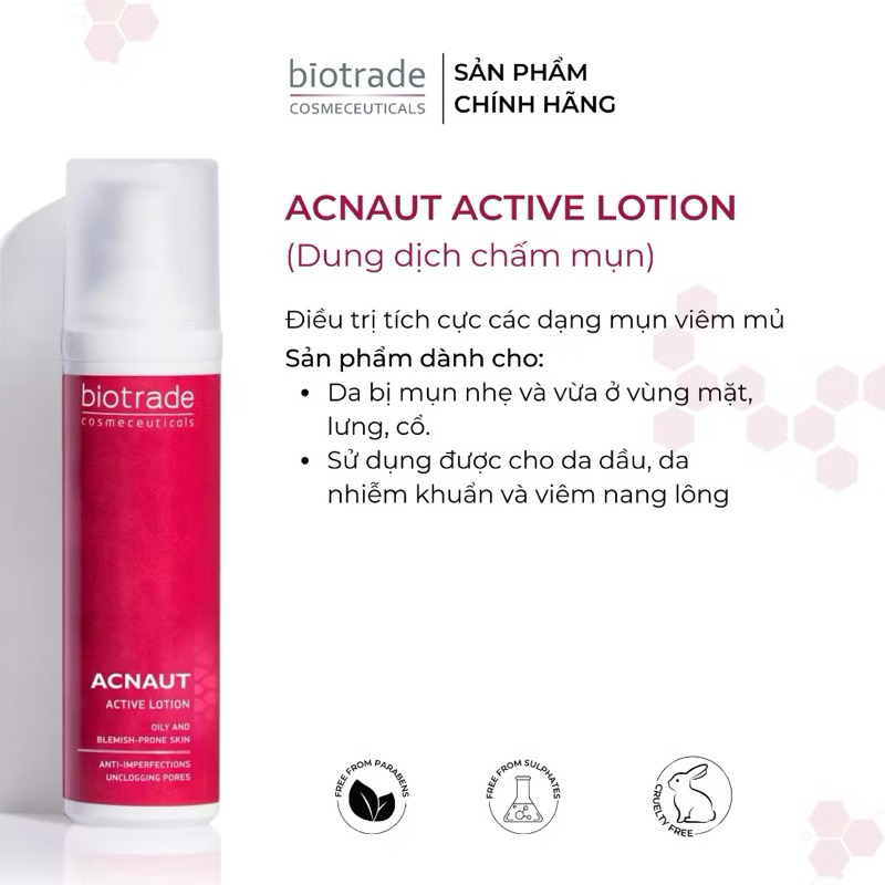 Dung dịch chấm mụn Biotrade Acnaut Active - giảm mụn mủ, mụn dậy thì Lotion 15ML
