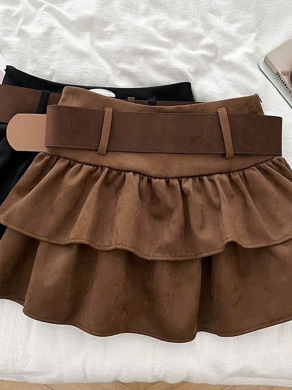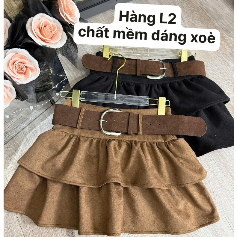 Chân Váy Da Lộn Xoè Tầng Kèm Đai Da 2 Lớp Có Quần Bảo hộ QCL1 - DA2768