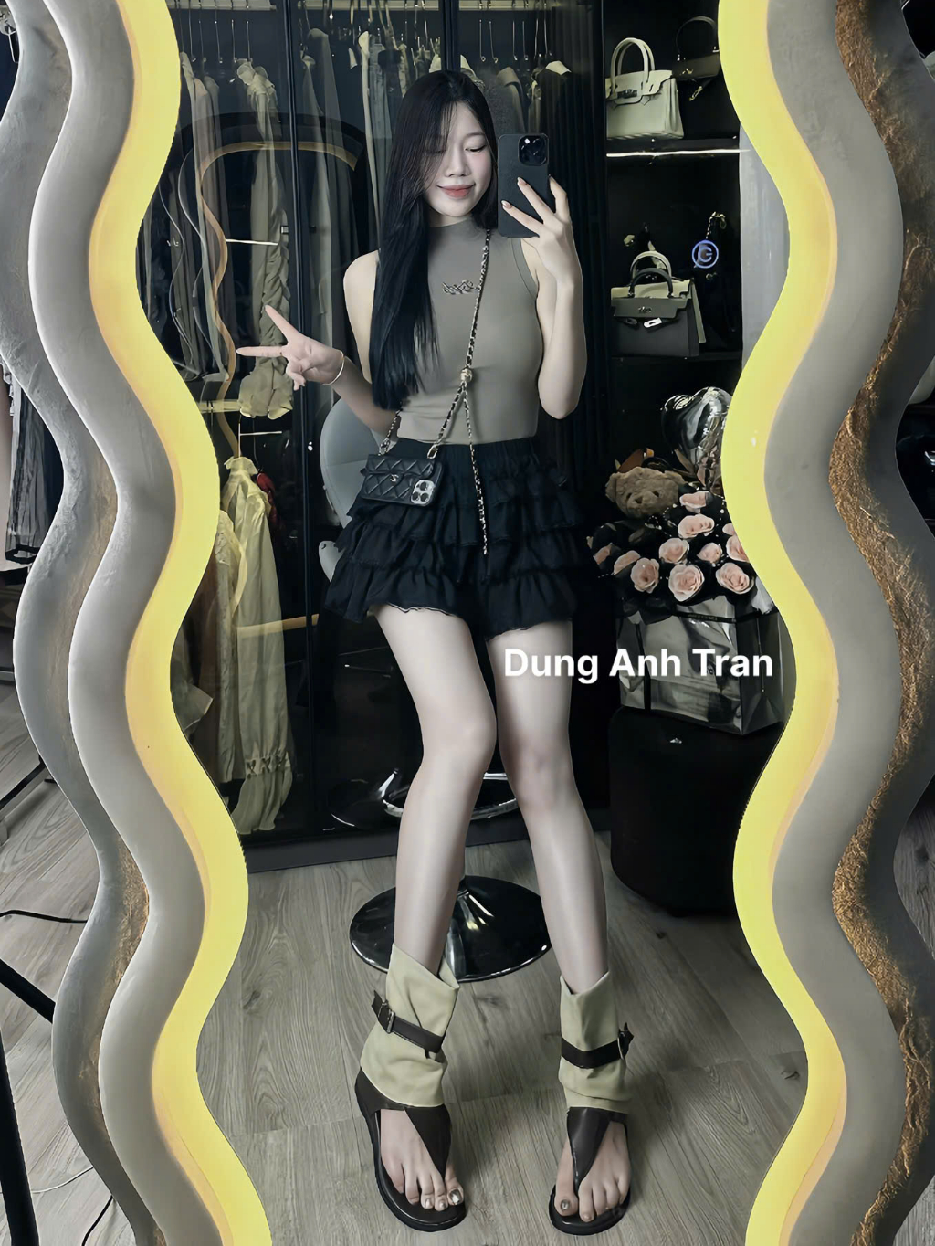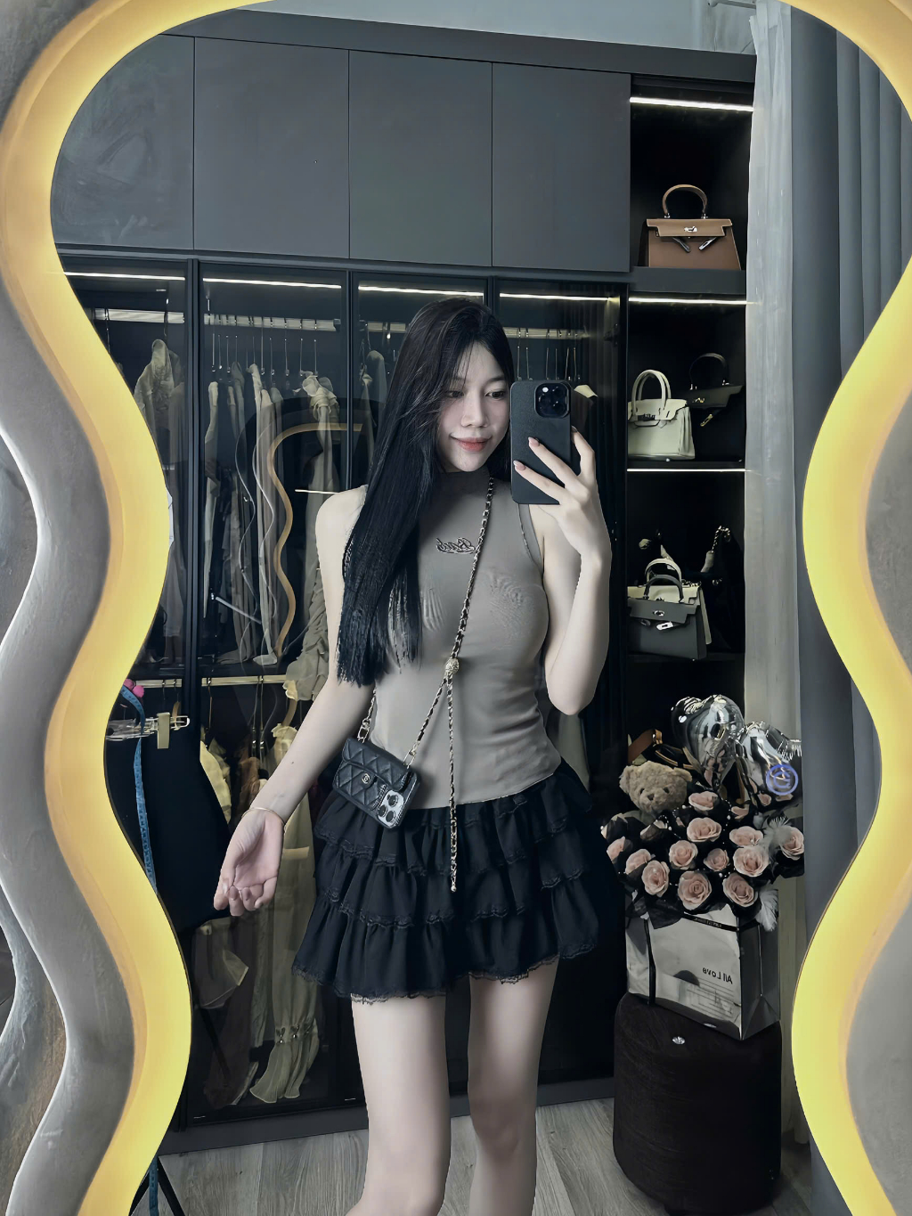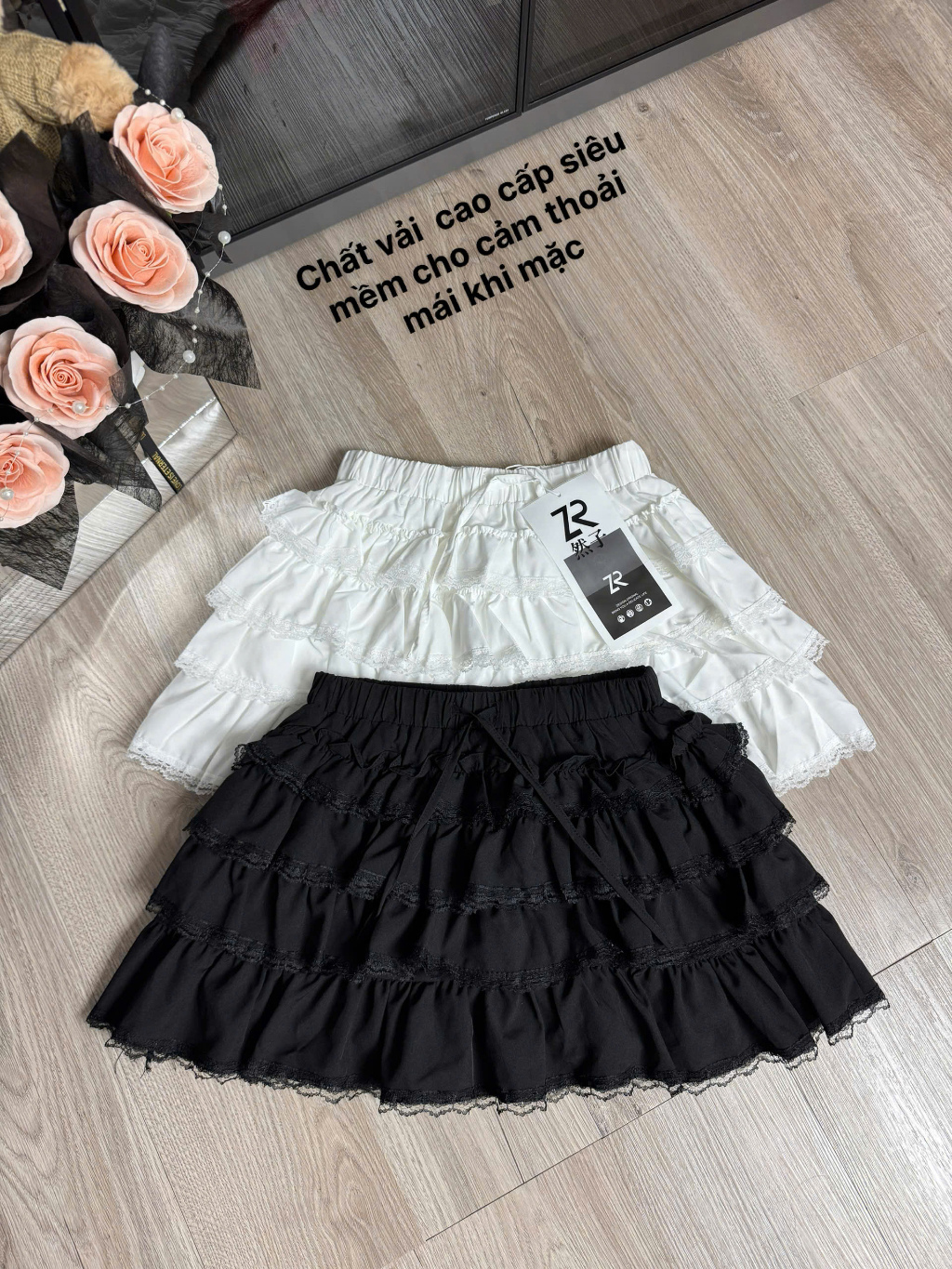 [ Hàng Chuẩn 6939 ] Chân Váy Xoè Tầng Phối Ren Lưng Chun 3 Lớp Có Lót Trong QCL1