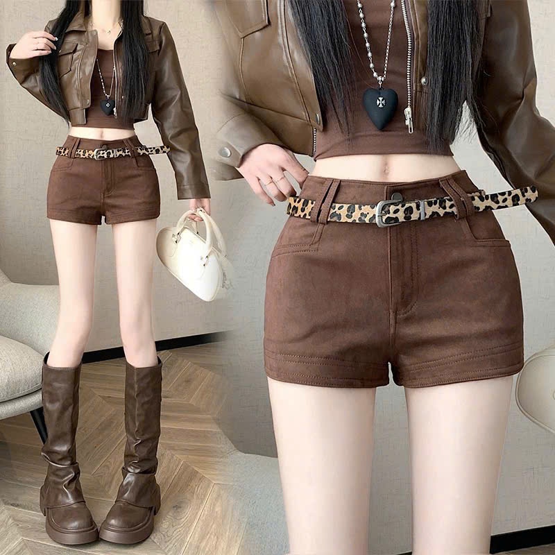 Quần Short Da Lộn Kèm Đai Da Páo Hàng QCL1 - DA6012