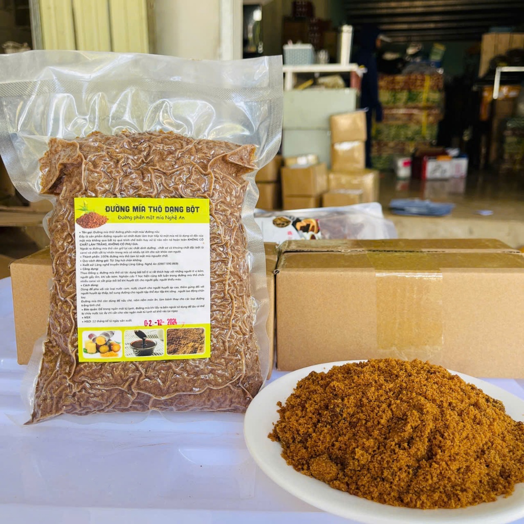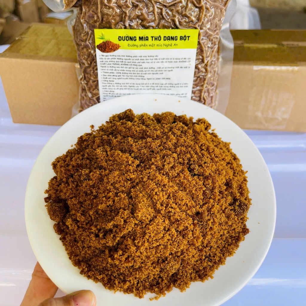 Đường Mía Thô Nguyên Chất Dạng Bột, Đường Nâu Được Cô Đặc Từ Mật Mía Không Pha Trộn- Túi 1Kg