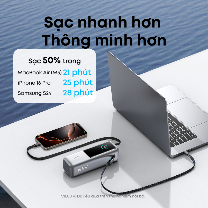 [New] Sạc di động Anker Zolo 25.000mAh | Công suất 165W | Tích hợp 2 cáp USB-C có thể rút gọn | Có màn hình A1695