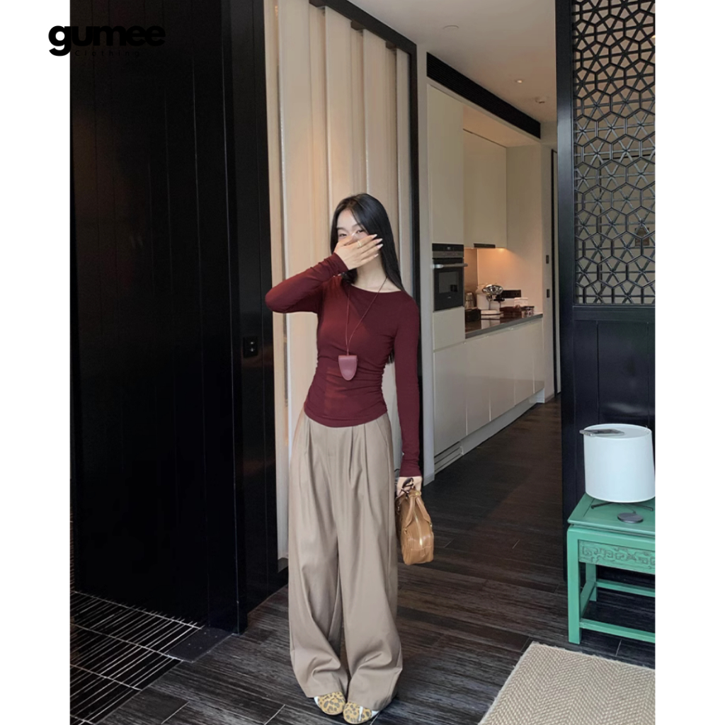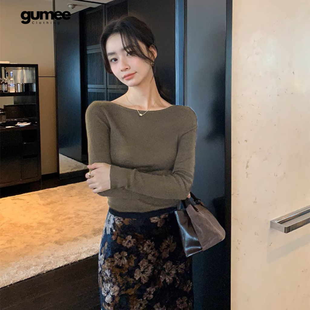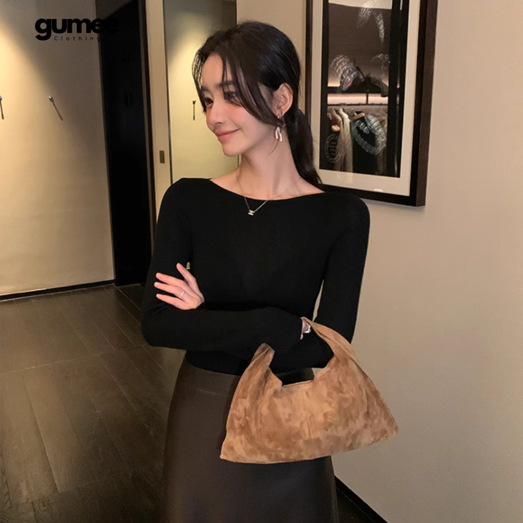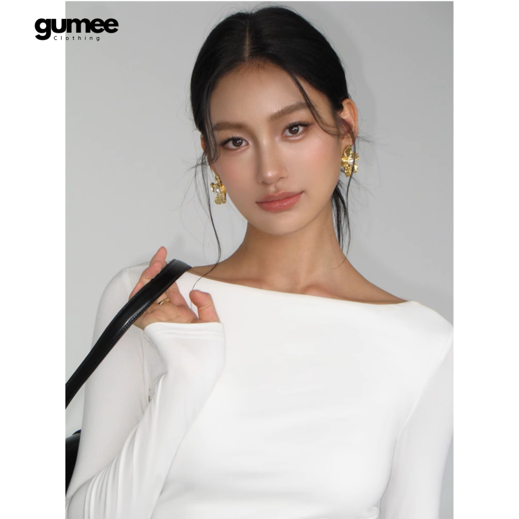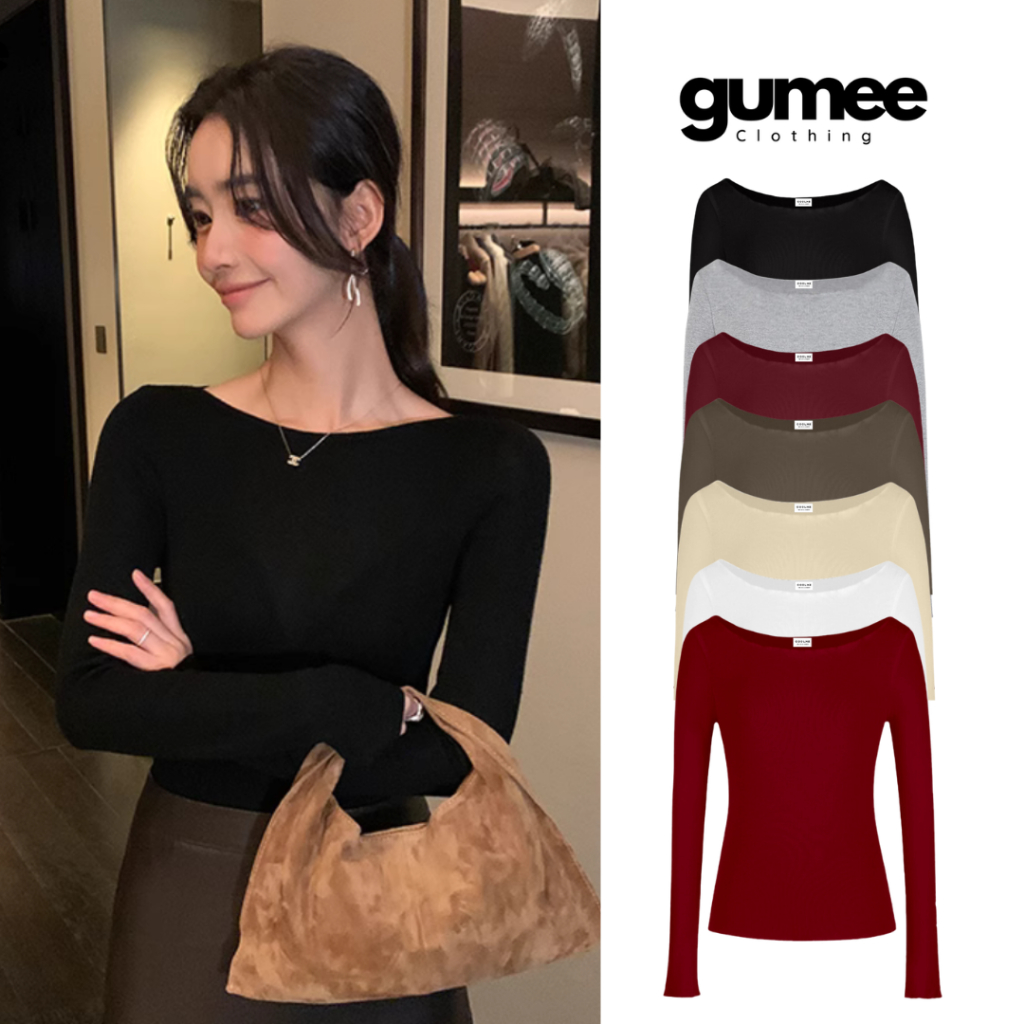 Áo thun cổ thuyền dài tay nữ Gumee, áo tay dài ôm body nữ fit dáng chất cotton mềm co giãn - G03