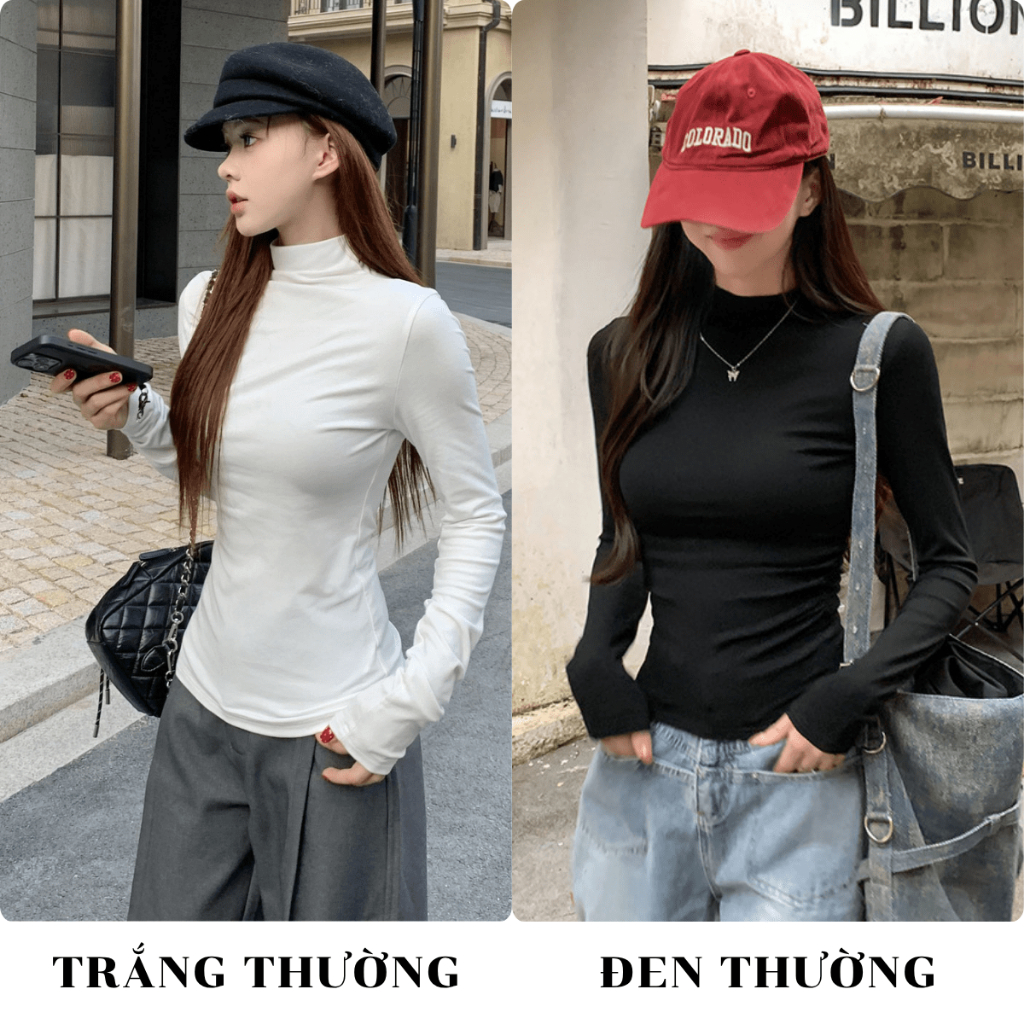 Áo Nỉ Giữ Nhiệt Nữ Cổ Cao 3 Phân Co Giãn 4 Chiều Áo Giữ Nhiệt Nam Nữ LÓT NỈ Form Ôm Tôn Dáng MIAA