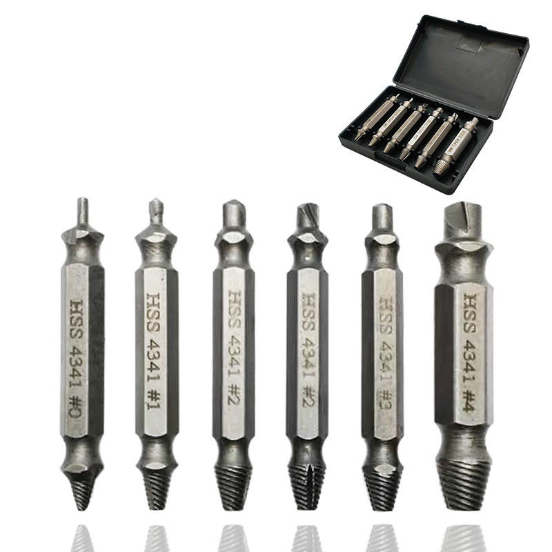 Bộ 6 Mũi Khoan,Máy tháo vít đầu bị hỏng,Dụng cụ nhổ răng trượt vít hai đầu,Tháo Ốc Vít Bị Hỏng Lt Dễ Dàng Mang Theo