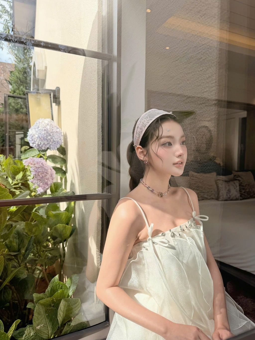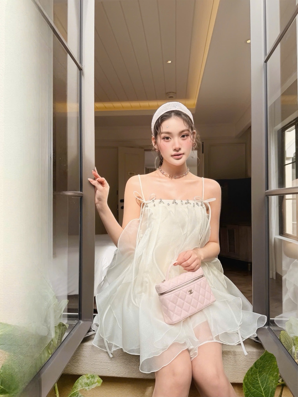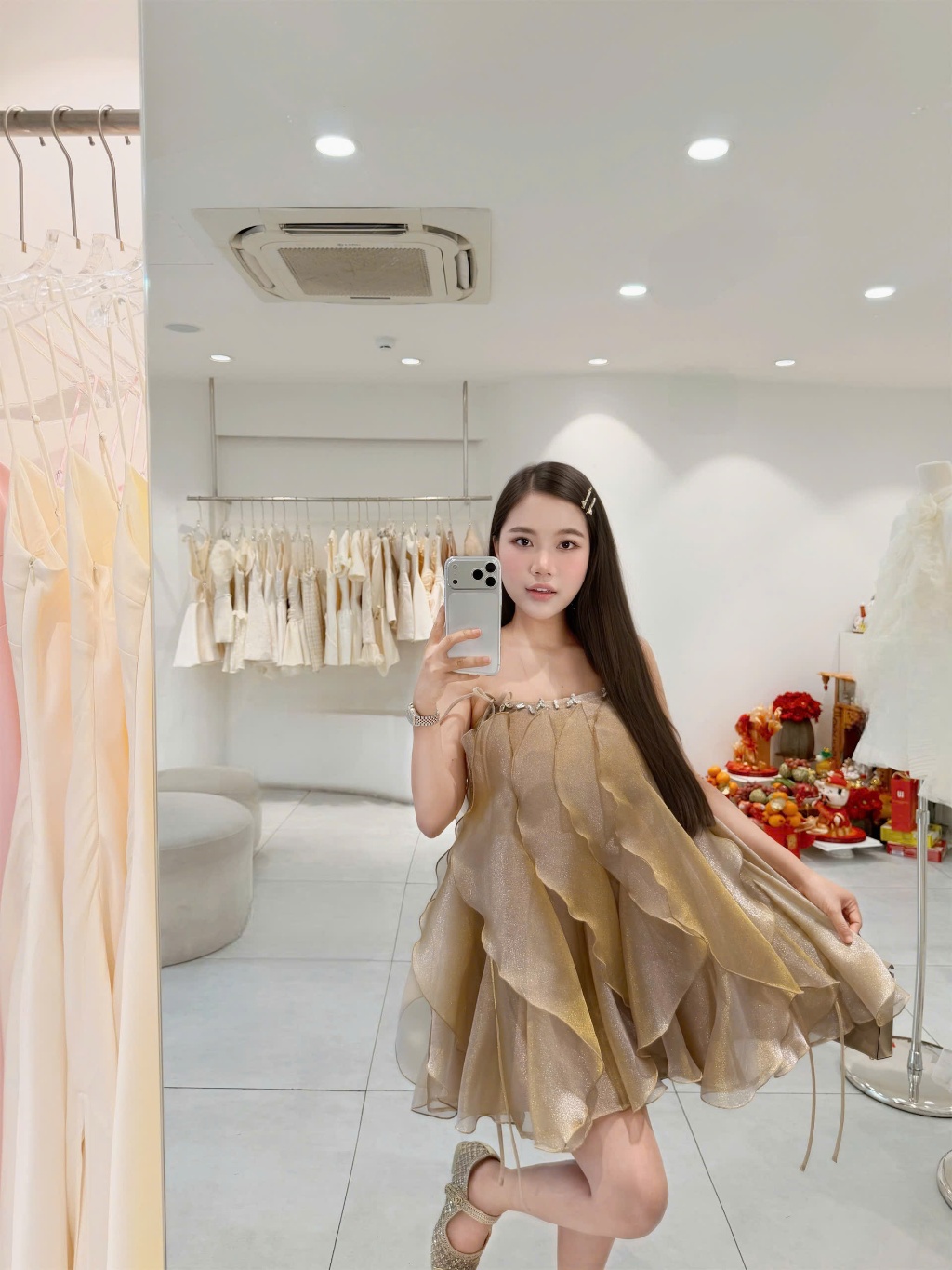 Set Áo 2 Dây Bèo Ánh Kim Đính Đá Chuẩn CHOUCHOU Quần Quần Short Ngắn Tafa