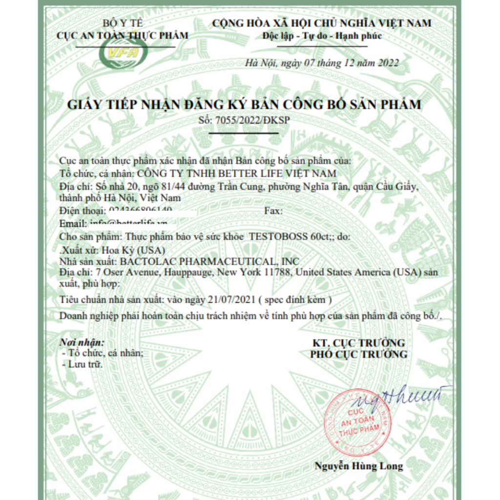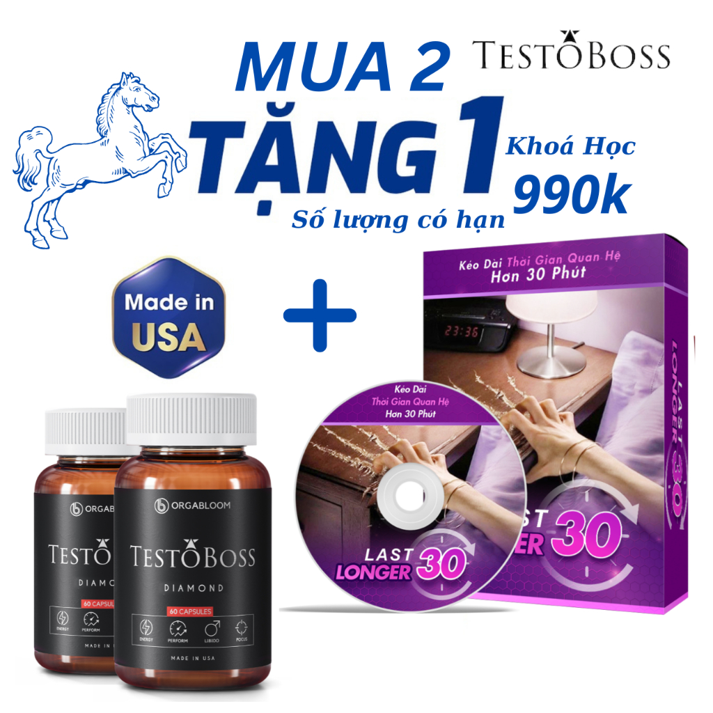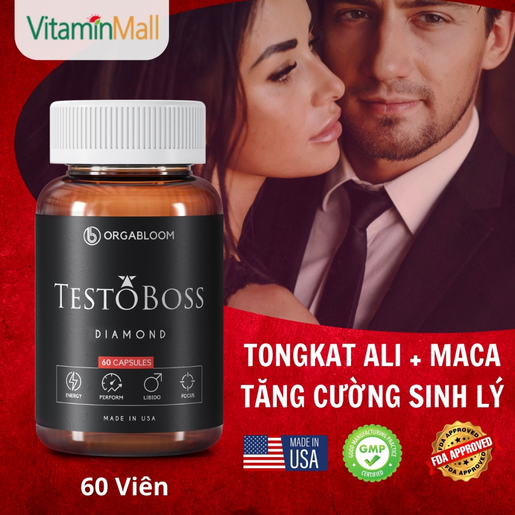 TESTOBOSS USA - Tăng Cường Sinh Lực Nam Với Maca, Nhân Sâm, Tinh Hàu (Hộp 60v)