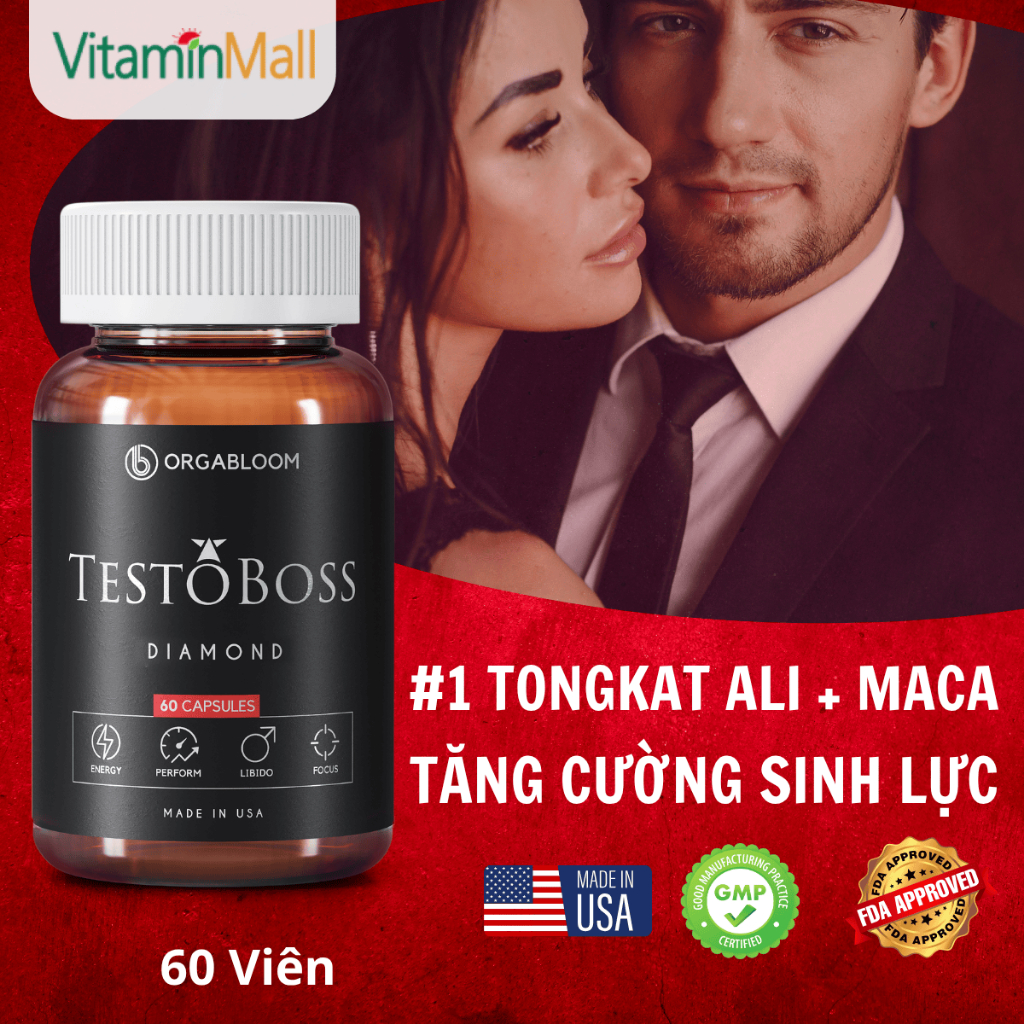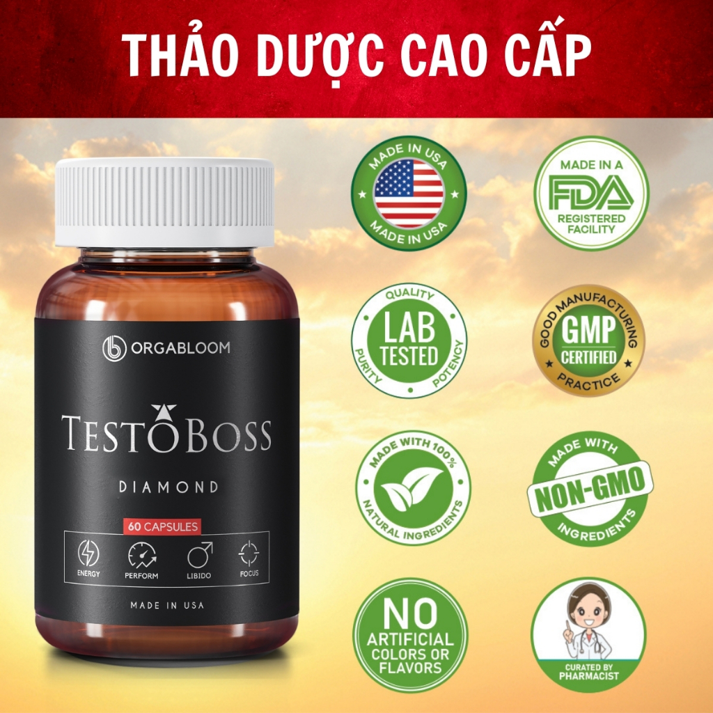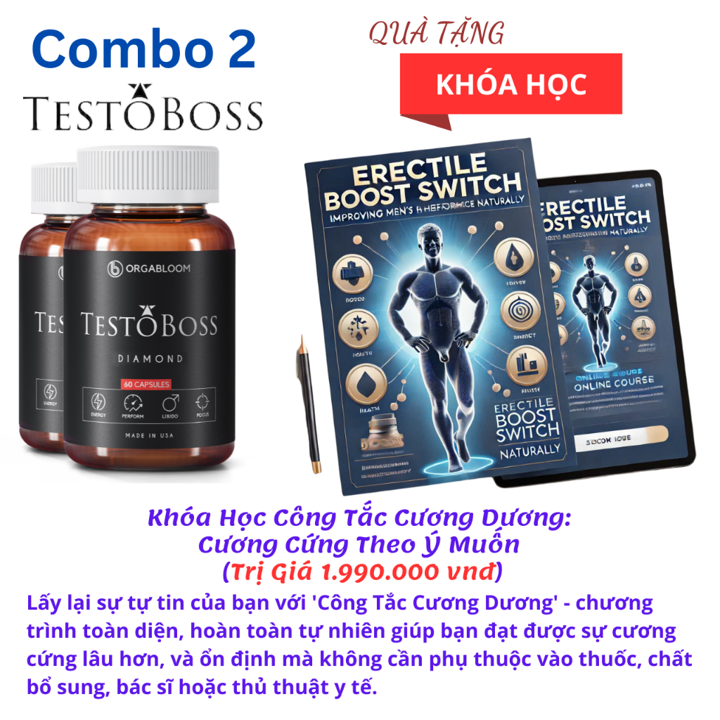 Viên uống Testoboss Mỹ - Cải thiện rối loạn cương dương - Tăng cường sinh lý nam (Tặng khóa học)
