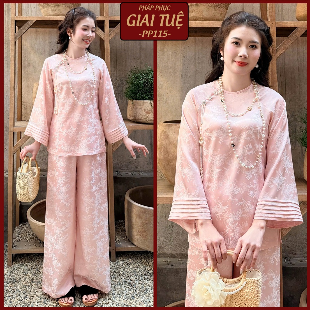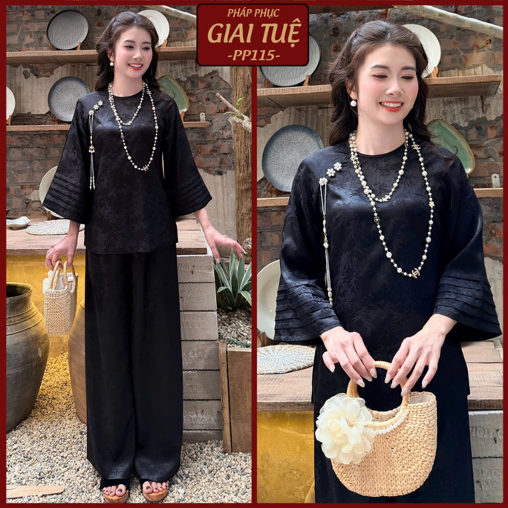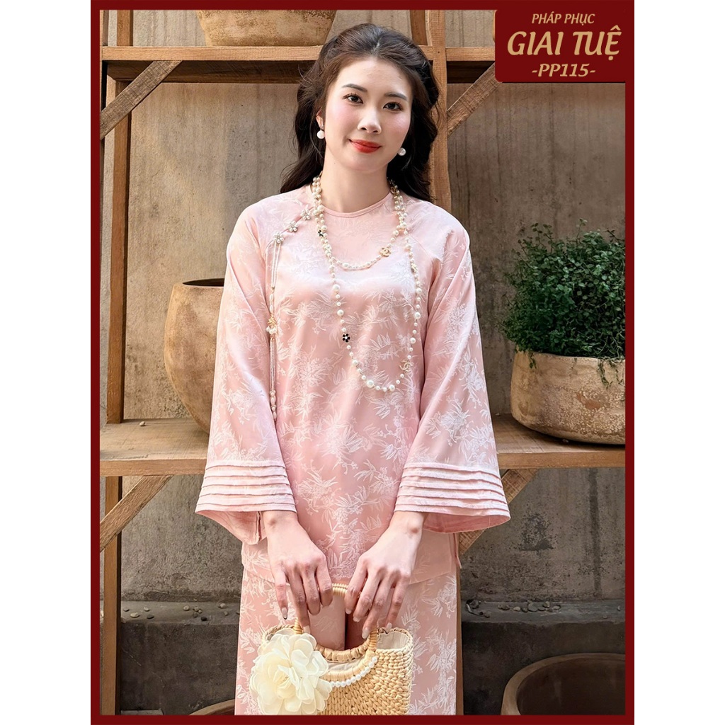 Pháp Phục Lễ Chùa, Mã Tay Xếp Ly Kèm Charm Ngọc, Chất Liêu Lụa Gấm 2 Da (PP115)