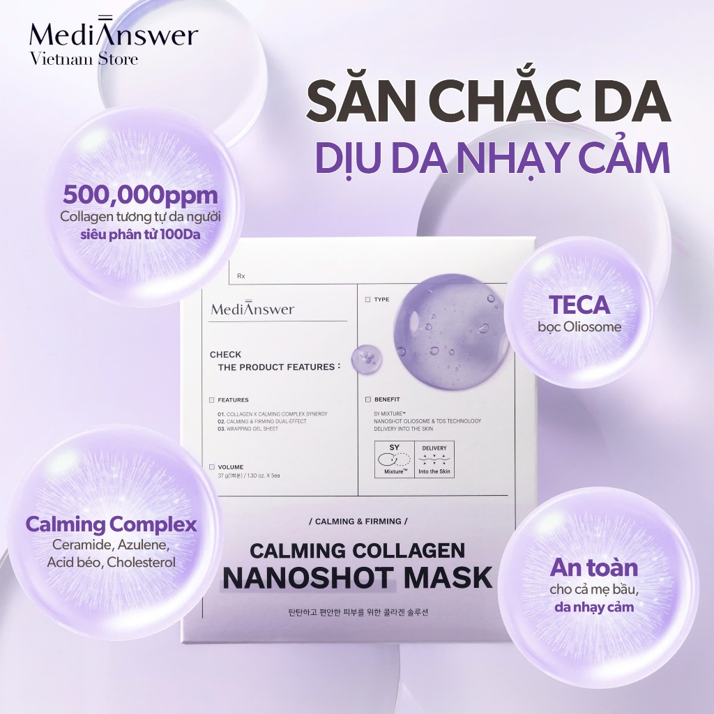 [LIVE] Mặt nạ thạch Nano collagen phục hồi da nhạy cảm MediAnswer Calming Nanoshot Mask 37g | Hộp 5 miếng