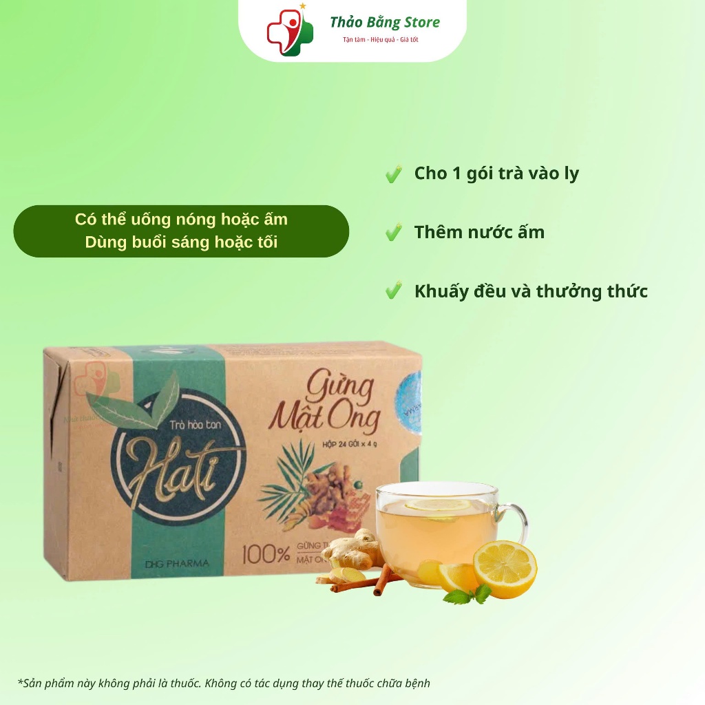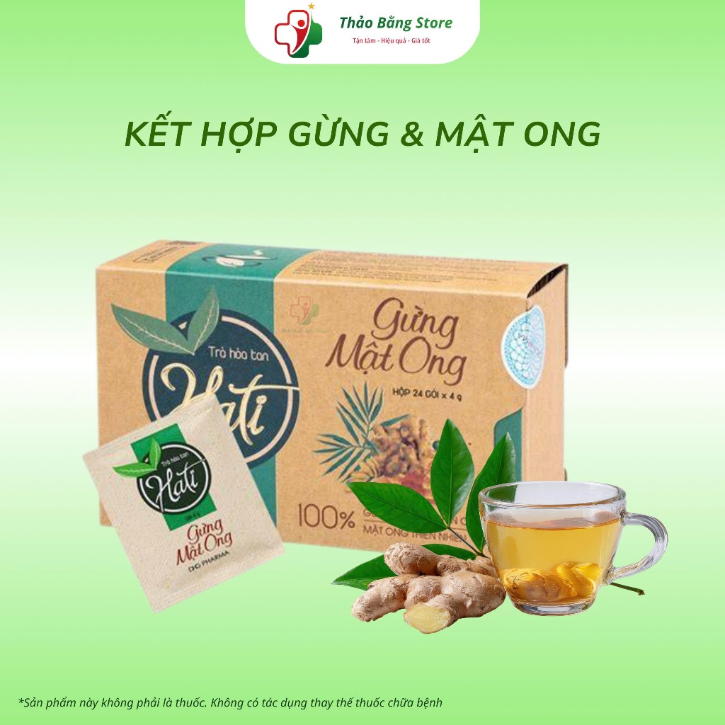 TRÀ GỪNG VÀ MẬT ONG HATI (Hộp 24 gói) - Hỗ trợ tiêu hóa, ấm bụng, giảm ho.