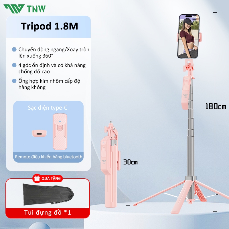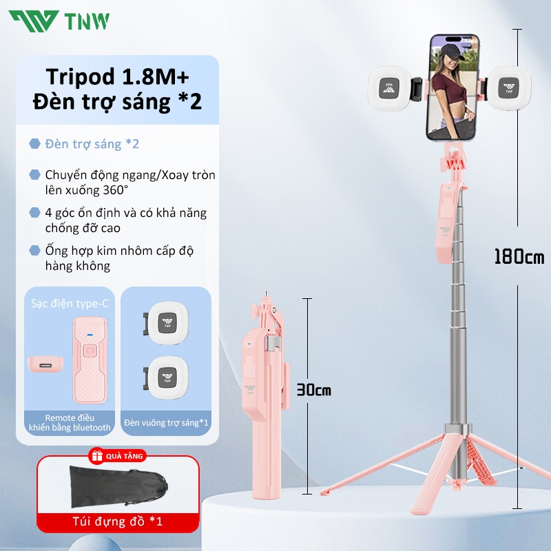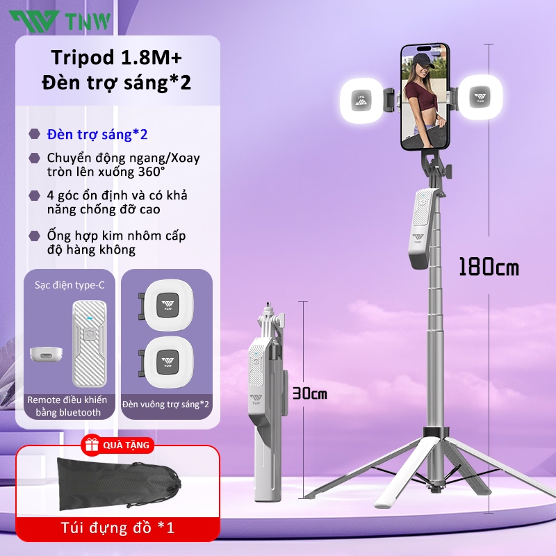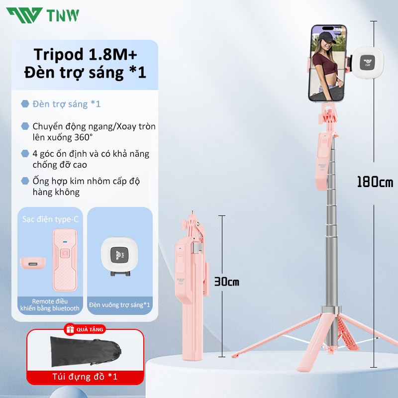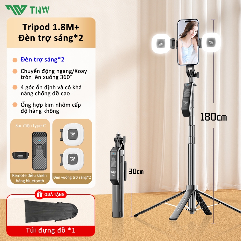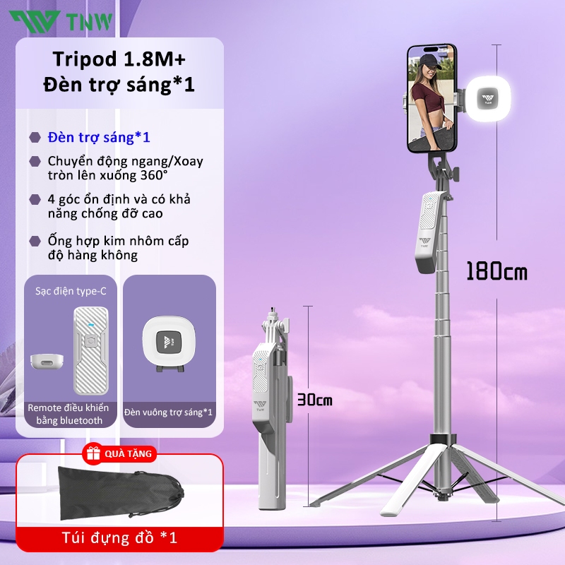 TNW S30 Gậy Chụp Ảnh 4 Chân Có Đèn Led Dài 1m8,Chụp Ảnh Từ Xa Bluetooth,quay hình video selfie livestream