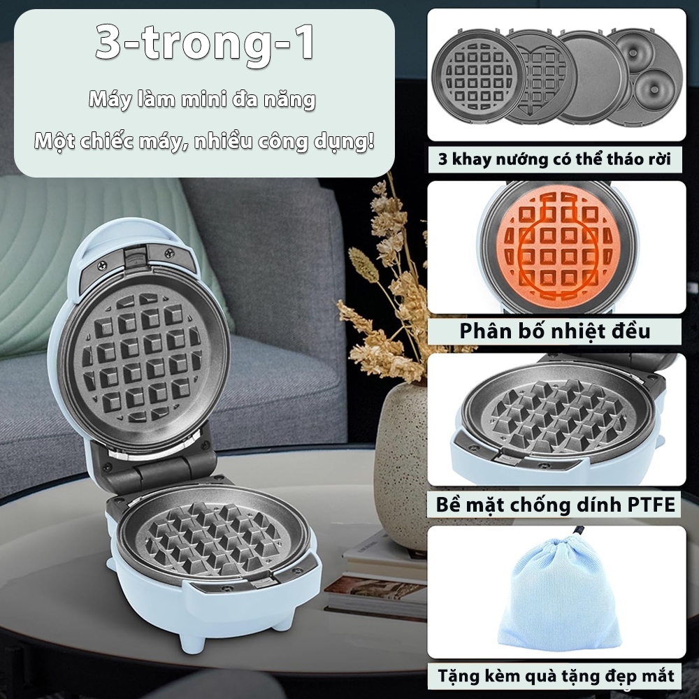 Aimi Máy Làm Bánh Waffle 3 Trong 1 Cho Gia Đình - Khay Nướng Tháo Rời, Bánh Donut Mini/Trứng Chiên/Bánh Waffle