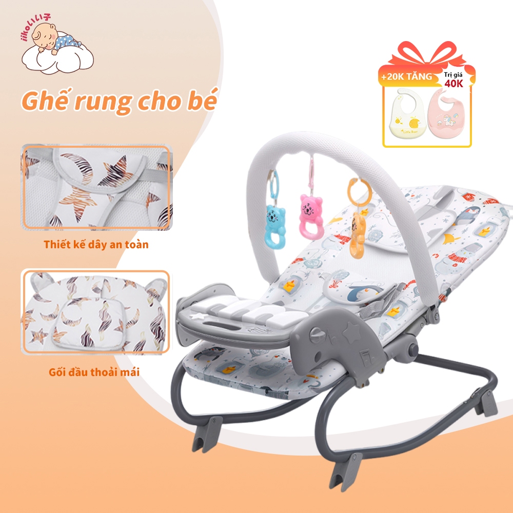 iiko Ghế Bập Bênh Nhún Nhạc Đàn Piano Cho Bé - Âm Nhạc Ánh Sáng, Nệm Êm, 3 Điều Chỉnh