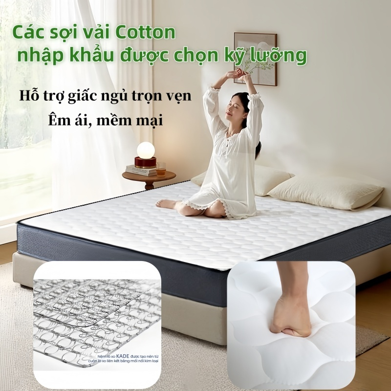 Nệm lò xo KADE lò xo liên kết 19cm Nâng Đỡ Trọn Vẹn giấc ngủ Nệm Khách Sạn giá tốt bảo hành 10 năm