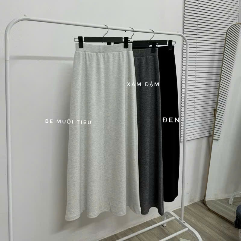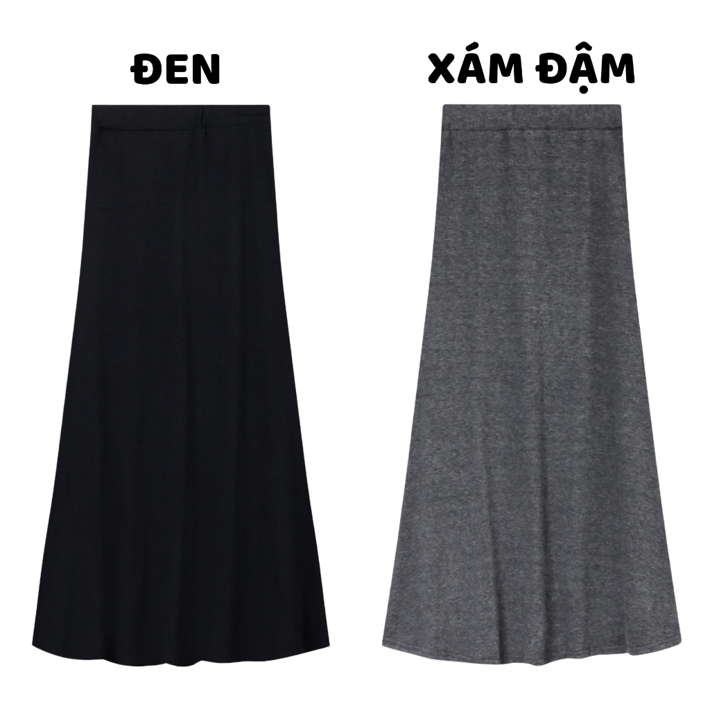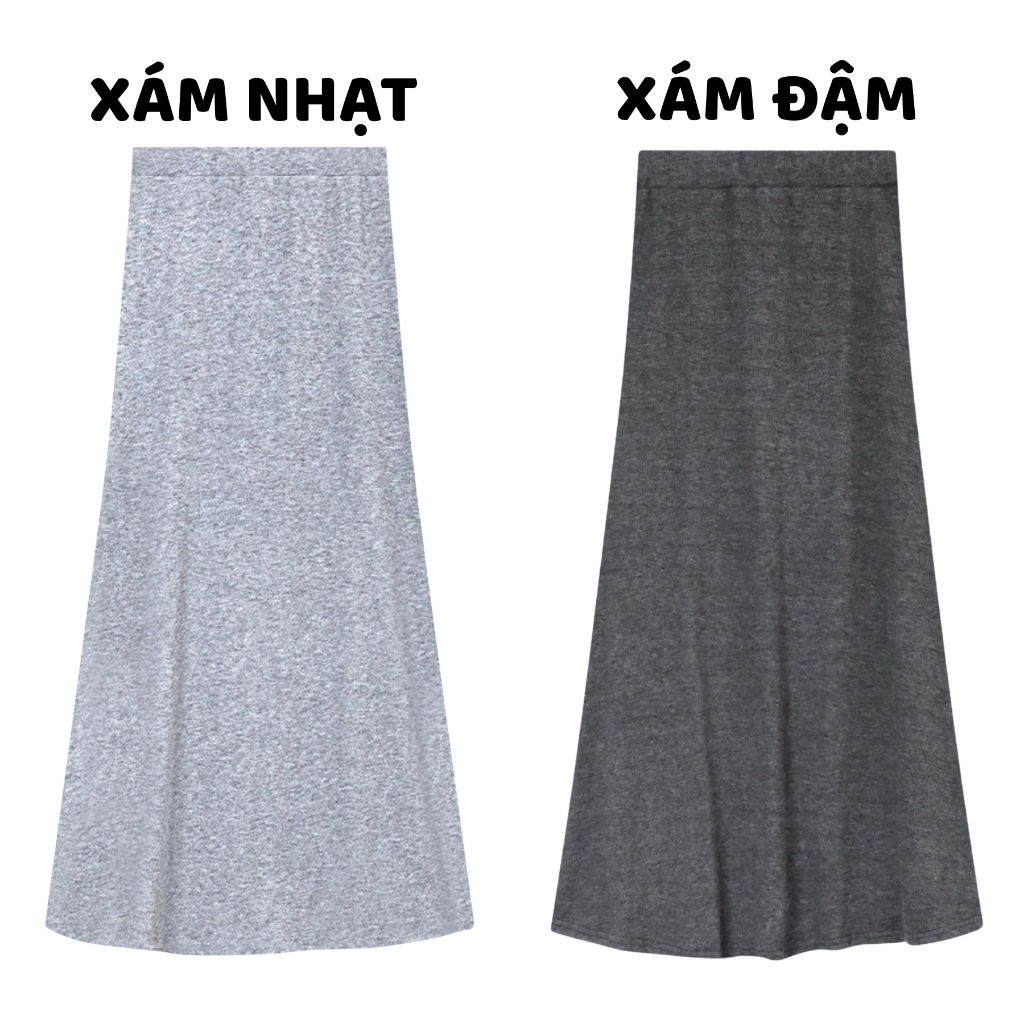 Chân váy len thun dài co giãn công sở dáng suông dài chữ a xòe xếp ly xám đen thanh lịch CV85