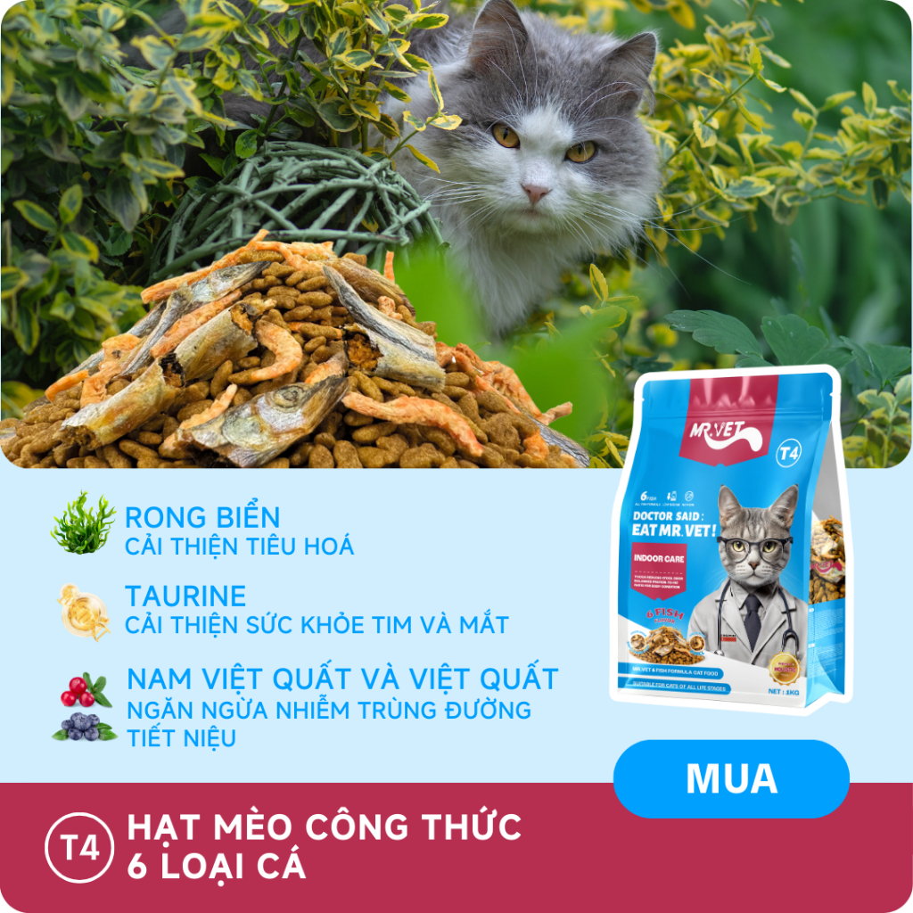 Thức Ăn Cho Mèo MRVET Dạng Hạt T4 Gói 1KG Giảm Mùi Hôi Chất Thải Dành Cho Mèo Nuôi Trong Nhà