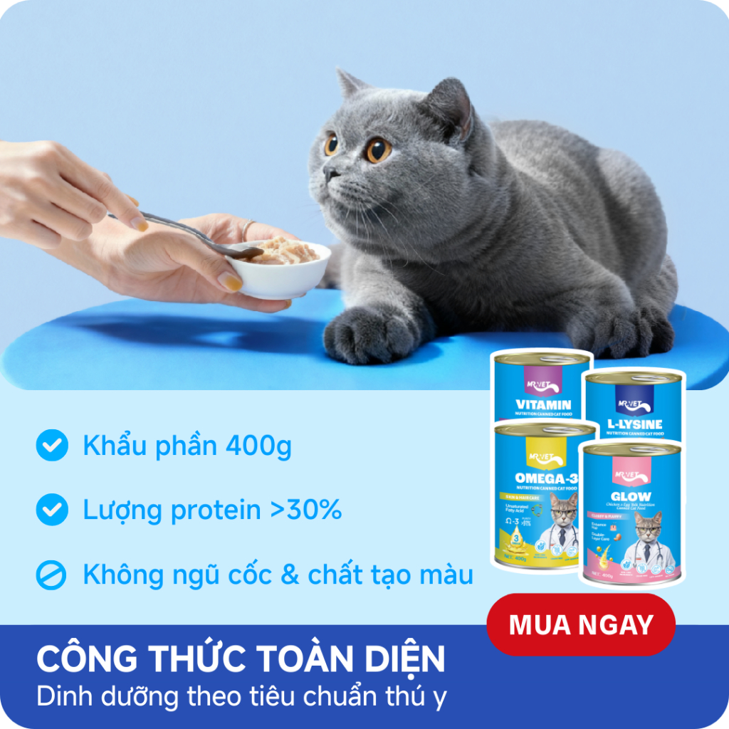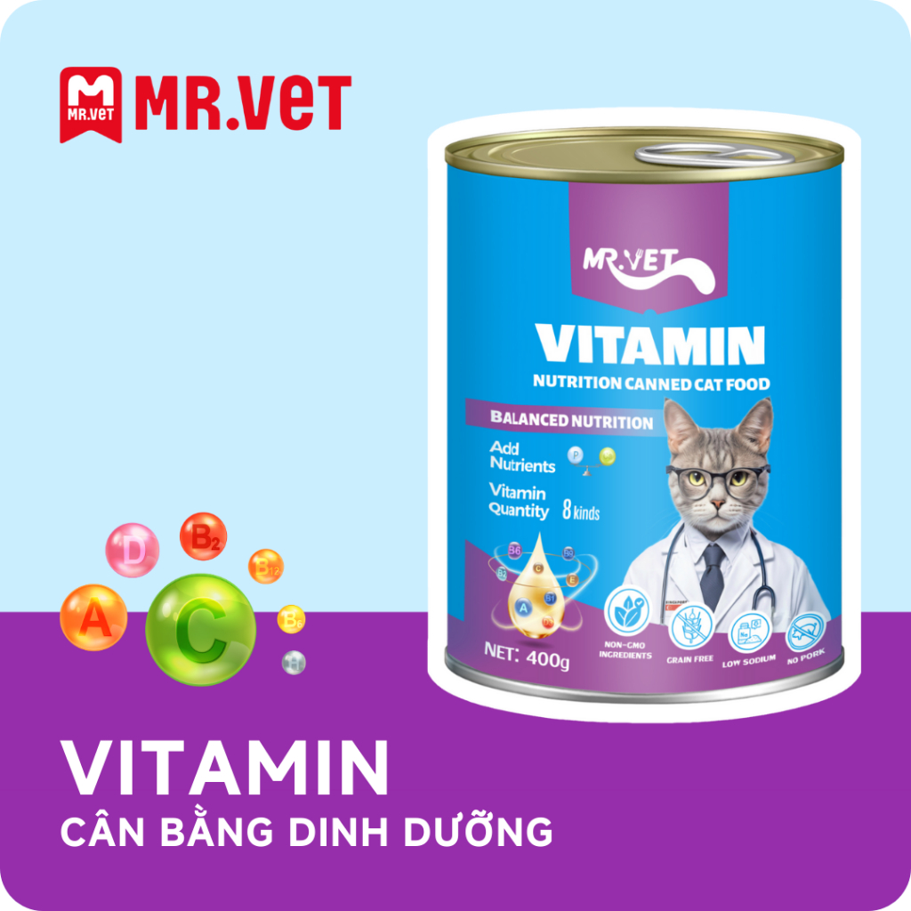 [MỚI] Thức Ăn Cho Mèo MRVET Dạng Pate Lon 400G Tiêu Hóa, Sáng Mắt, Mượt Lông, Tăng Sức Đề Kháng