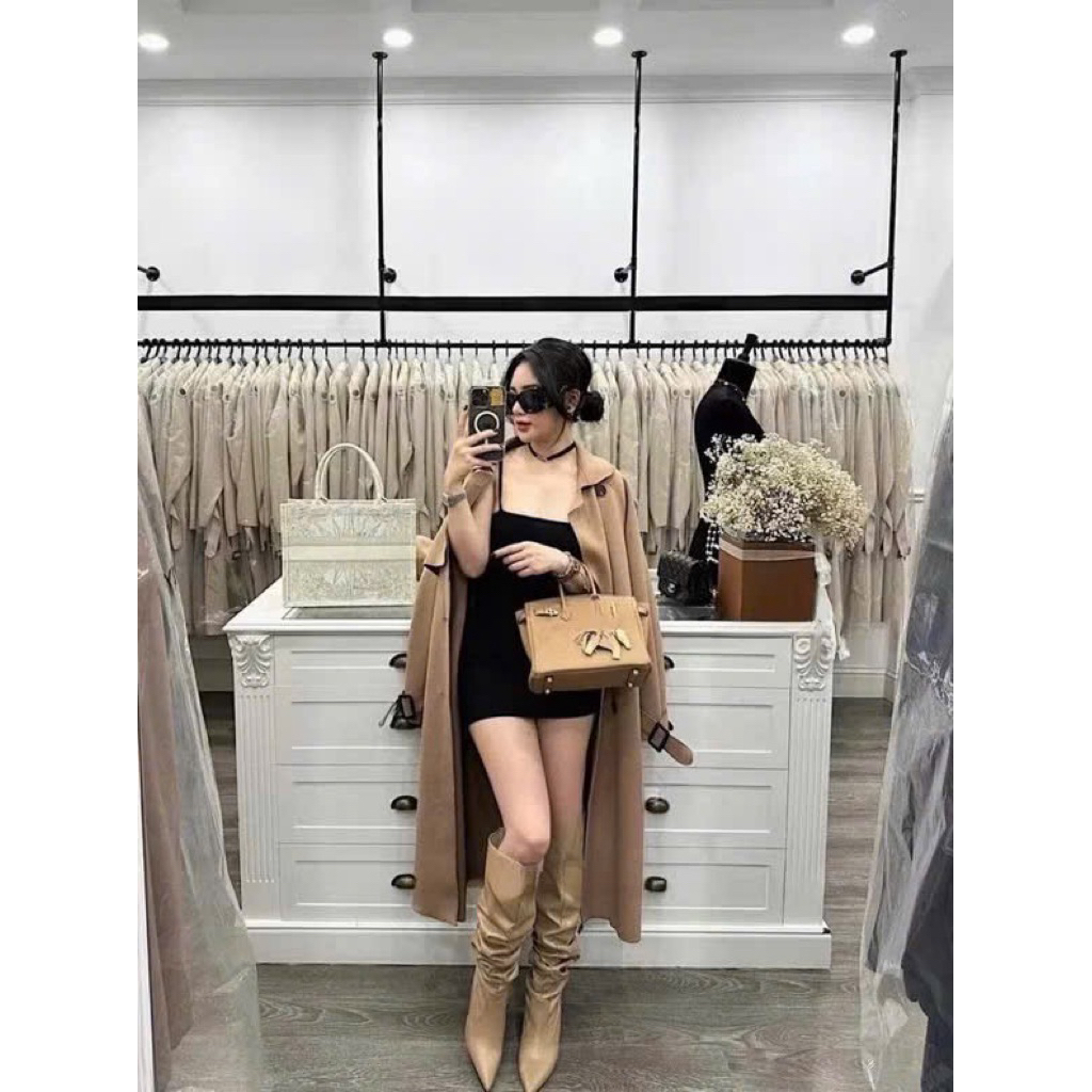 Áo Khoắc Dạ Ép Dáng Dài 3 Màu Kèm Đai ,Áo Mangto Dạ Ép Dáng Dài LOÓY.STORE